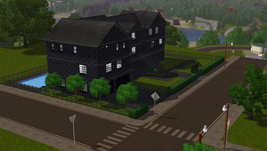 This lot has everything a rich sim family could wish for! Three floors including a nice quiet peaceful observatory where your sims can spend a Saturday morning drinking coffee and taking things nice and slow as they listen to the birds chirp outside the floor to ceiling windows. Guest quarters are located above the two car garage