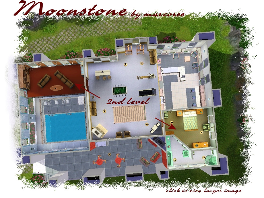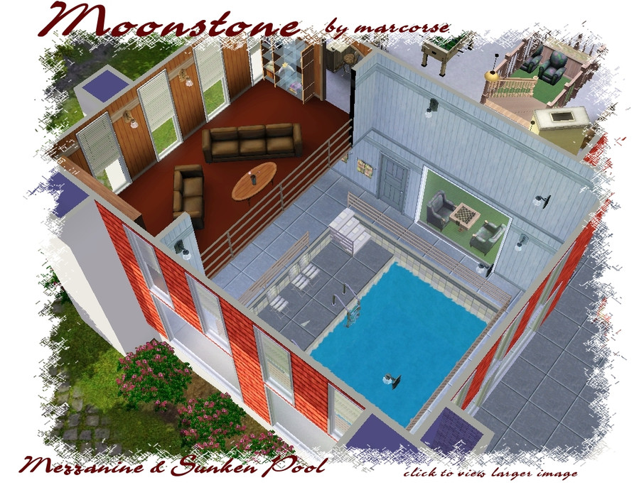 Moonstone is 2 storeys of basically open plan design, but there are nooks and corners for quiet relaxation as well. 1 bedrm and 2full baths, plus toilet and shower facilities in the pool area. The fully equipped kitchen includes a sitting room and is open to the second level. The sunken pool is a special feature, also open through the second level and there is another sittingroom on a half-mezzanine above the pool. The rear deck area includes bbq and dining as well as a cosy fireplace and seating. No custom content was harmed in the creation of Moonstone.
