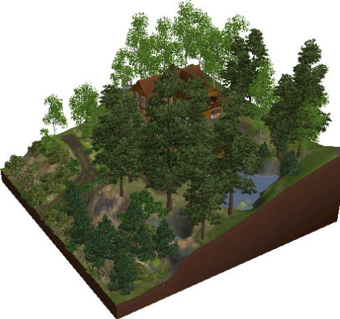 Placement: Across the road and just around the bend from the Crumplebottom house is the only spot you can place a 50x50 lot against the mountain and still have road access.