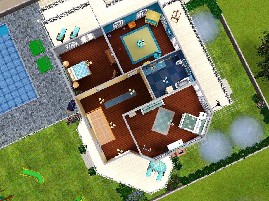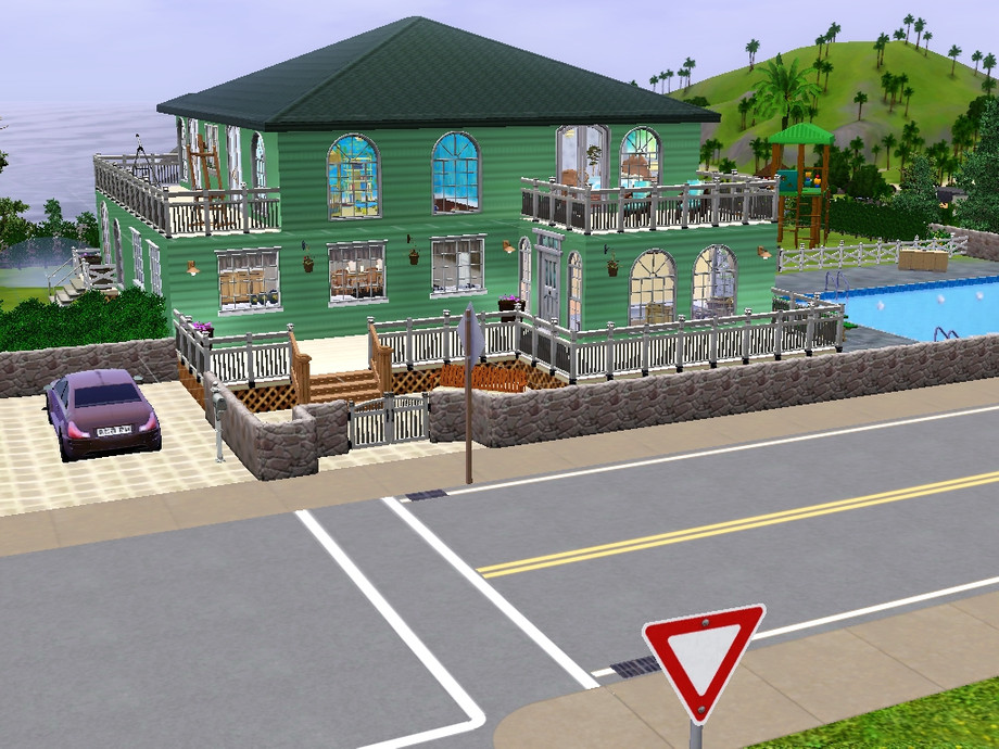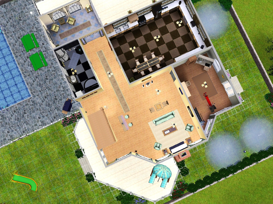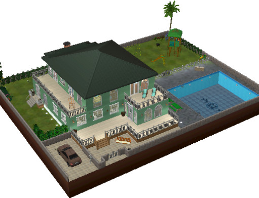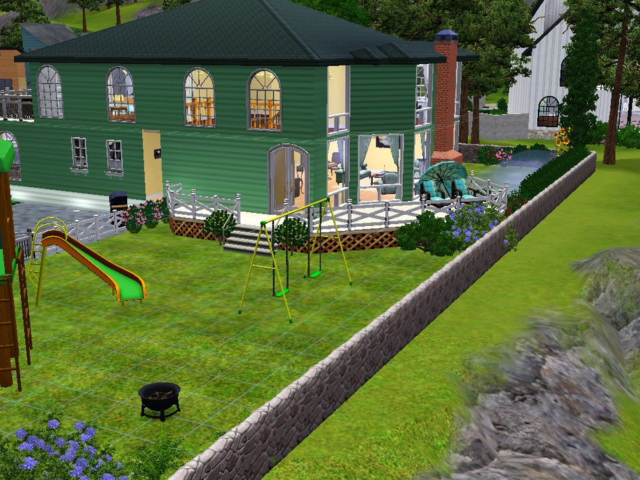 3 bedroom house ,2 bathrooms,kitchen,study/workout room. large swiiming pool with garden for kids to play in.also second garden for green fingered sims. this is my first lot so i hope it will be liked!! I built in on 250 redwood pkway,on a hilltop.