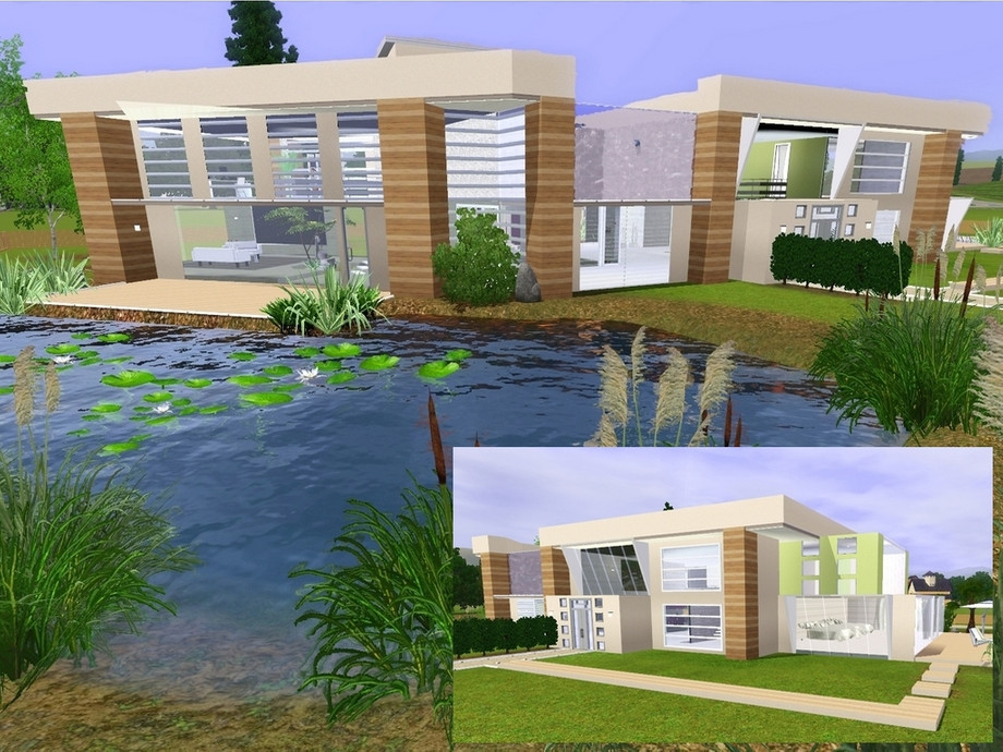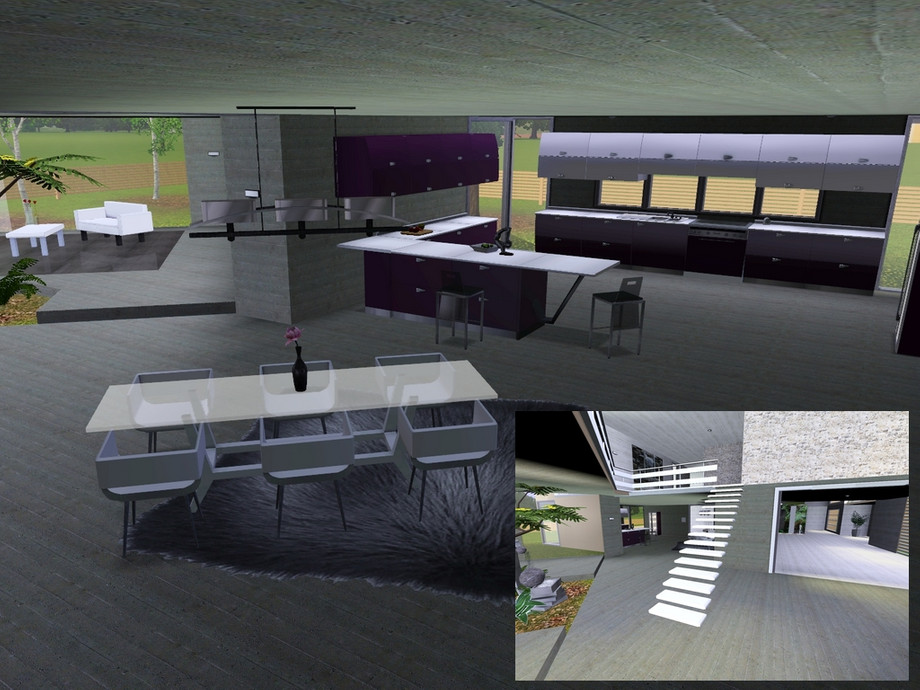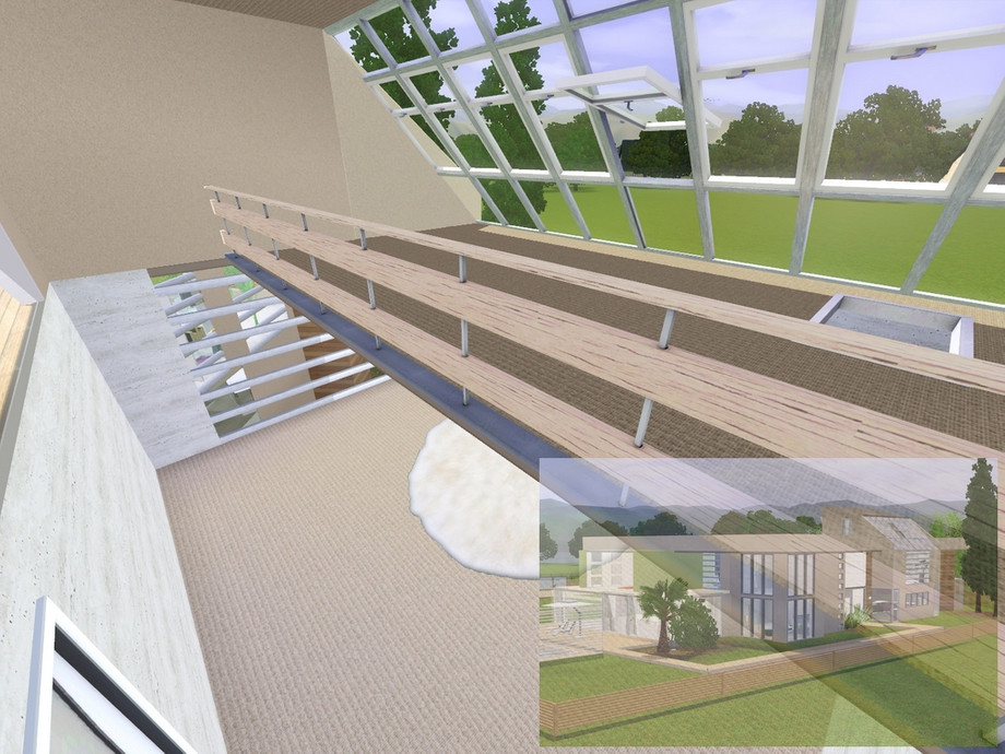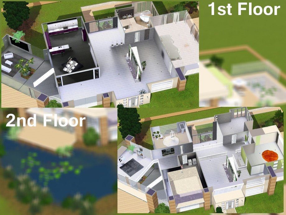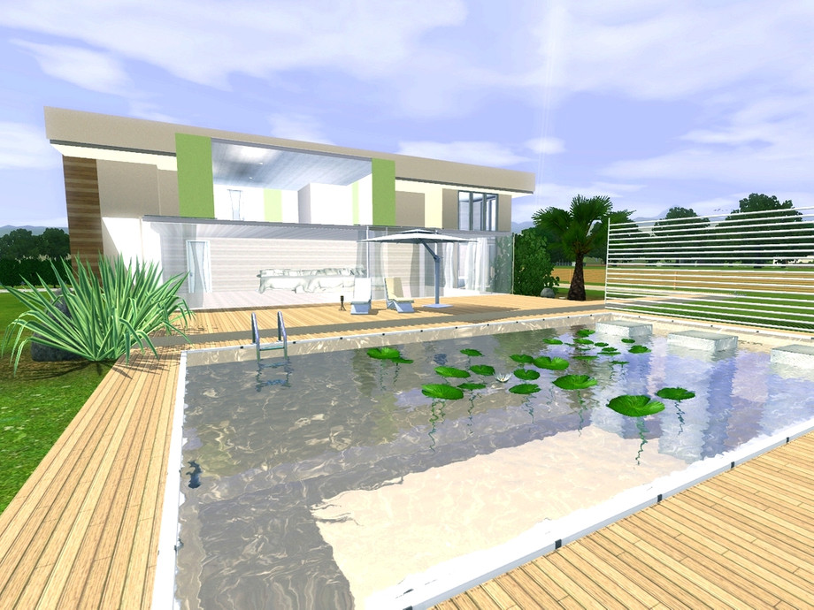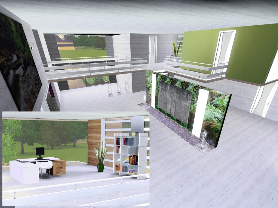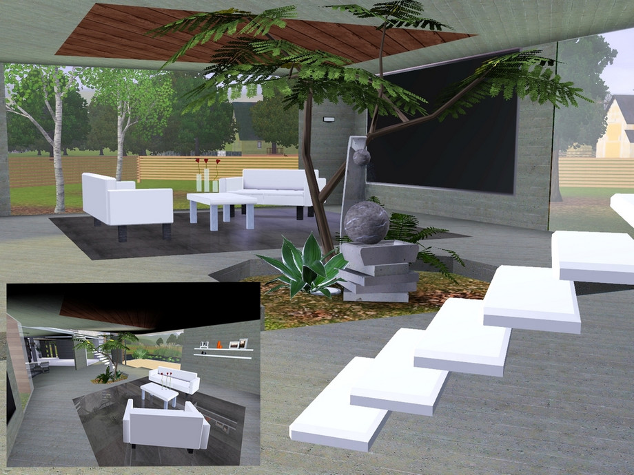 This home shows the synergy between nature and modern art. Let your simmies live between wonderful green plants, aromatic wood and cold dead concrete, so they may feel free and secure at the same time, seeing the beauty within the beast.