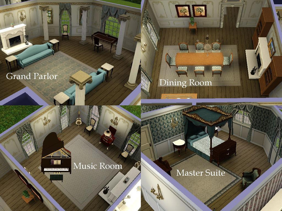 Contains many decorative items from the Sims Store. Also contains Mutske's free Colonial Curtains. House was built with recommended items listed below as seen in the pictures.