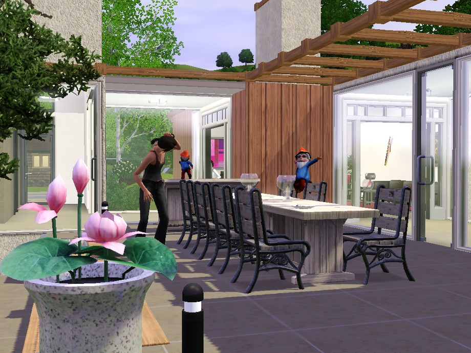 Newstad, a modern house build with care for nature. Big windows allow the outside to come in. Fred build with use of natural materials. Infested with gnomes who think the house is theirs. Thoroughly tested by the three Power Girls: Fred, Barb and Haagje. Now coming to your neighborhood! Enjoy!