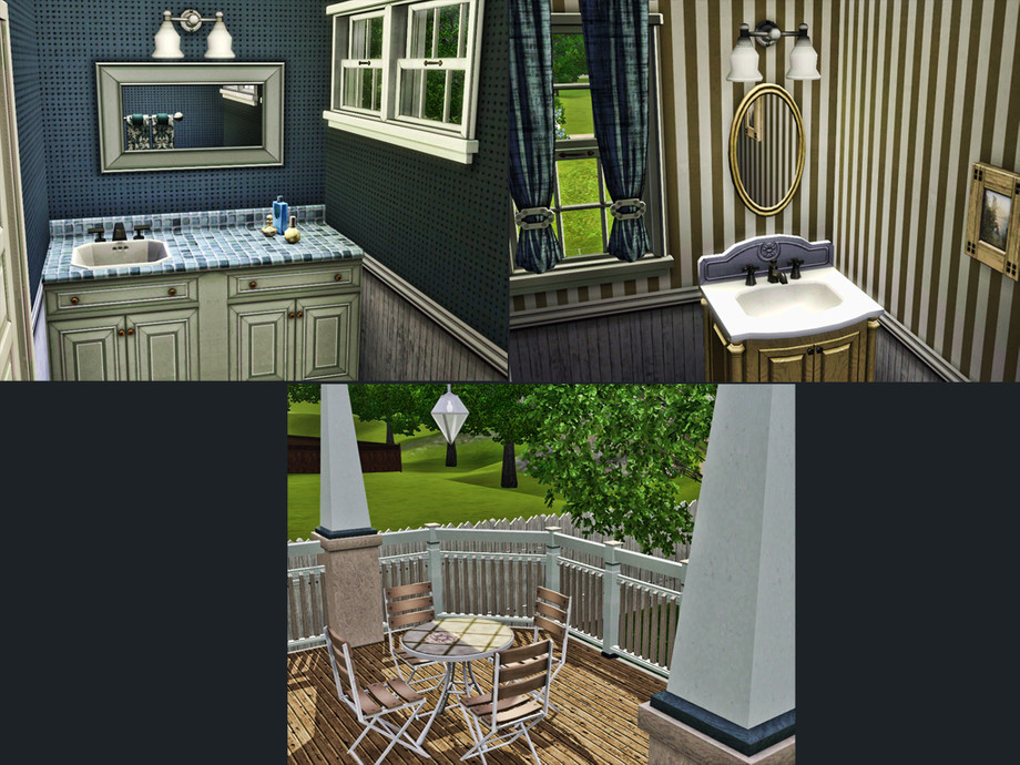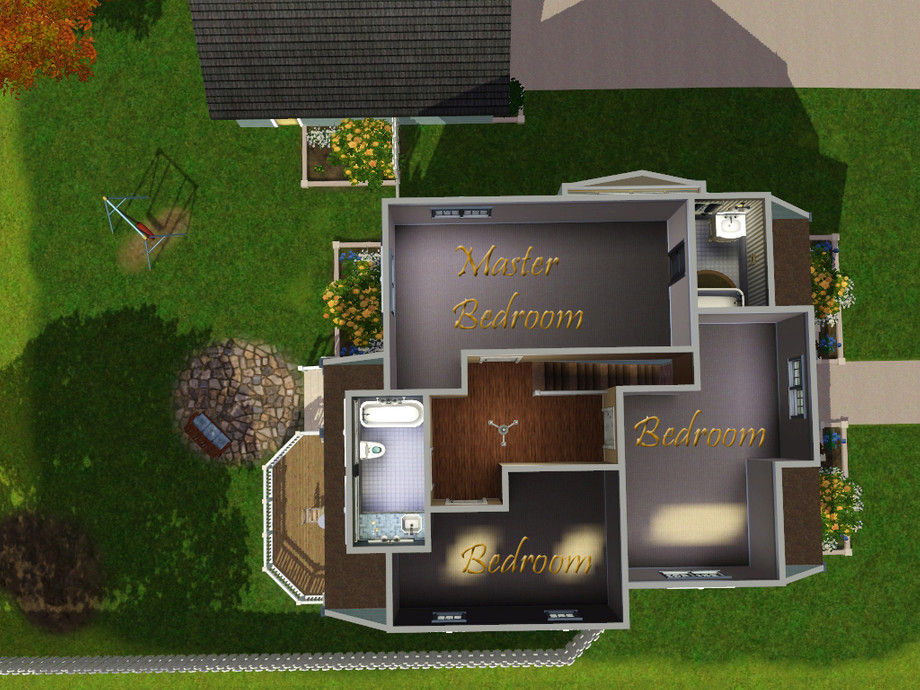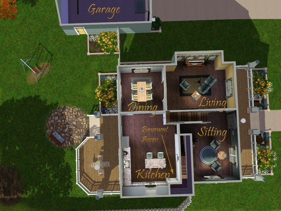 3 bedroom 2 bath family home. All rooms are furnished (sitting area in front of a fireplace, living room, formal dining room, eat-in kitchen, all bathrooms and outdoor living space) except for the bedrooms so that you may customize them to perfectly fit your Sim family. Complete with 1 car garage, full landscaping, and basement.