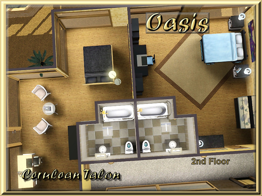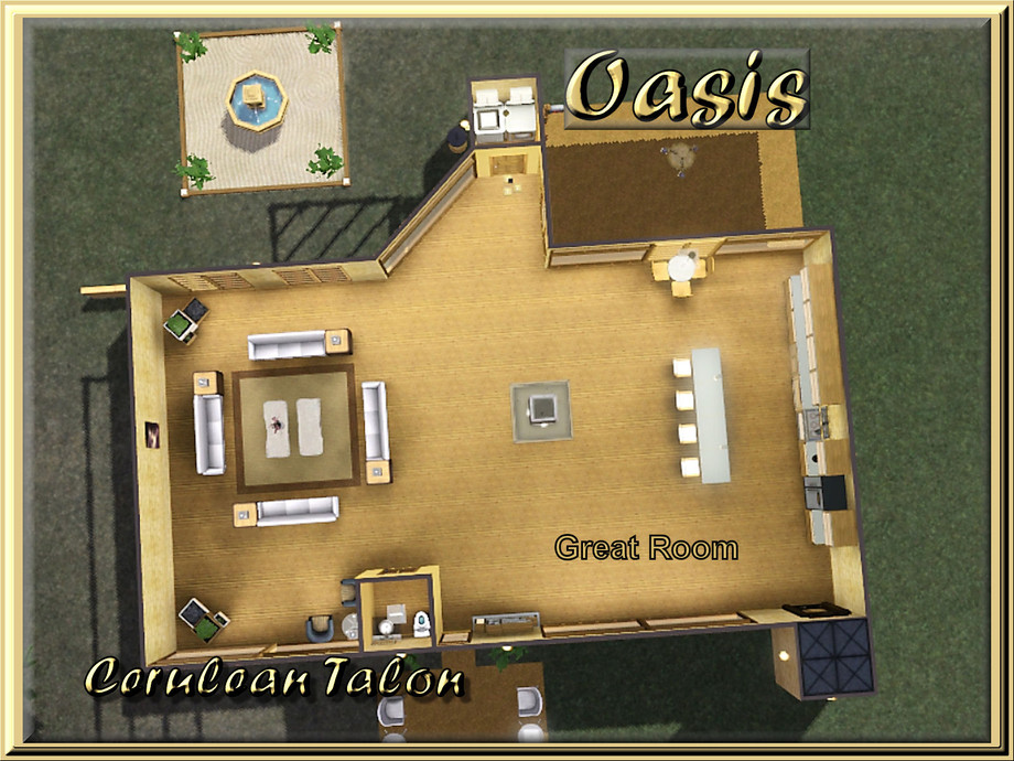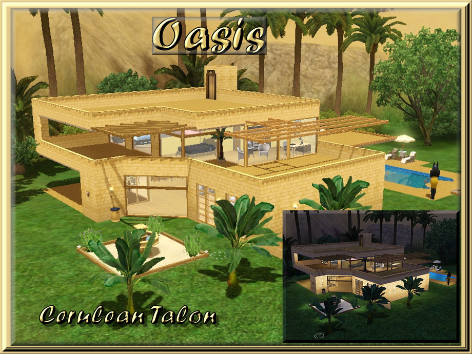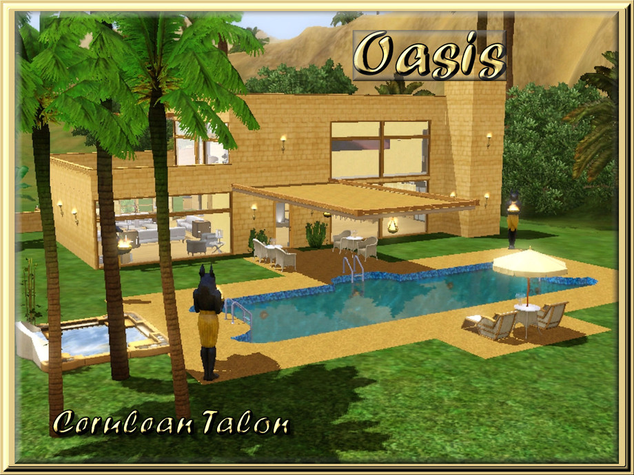 Whether used as your Sims base home or Egyptian vacation home, this house is filled with luxury, modern style and open floor plan make for a house that begs to become a home. Includes a large pool, spacious great room, 2 bedrooms, 2-1/2 baths, and laundry room.