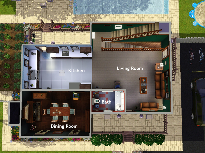 This fully furnished 4 story home features 4 bedrooms, 2 full baths, 2 half baths, kitchen, dining room, living room and a full, finished basement with a laundry room. The exterior is beautifully landscaped with a pool and patio area, children's playground, garden and a driveway with 4 parking spaces. It has been play-tested. This house was originally built on 477 Sunnyside Blvd in Sunset Valley.