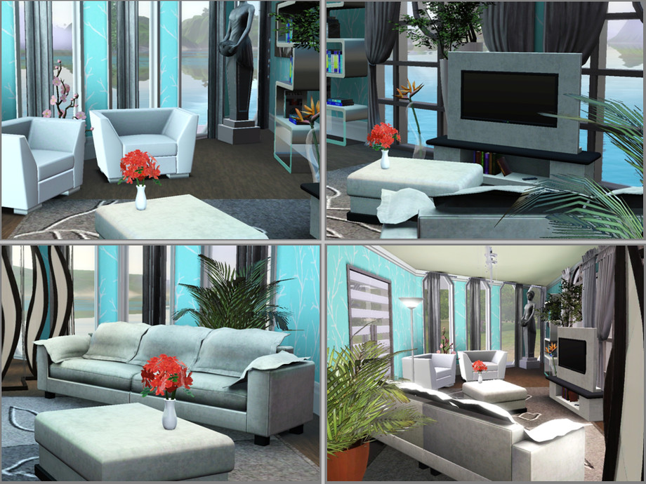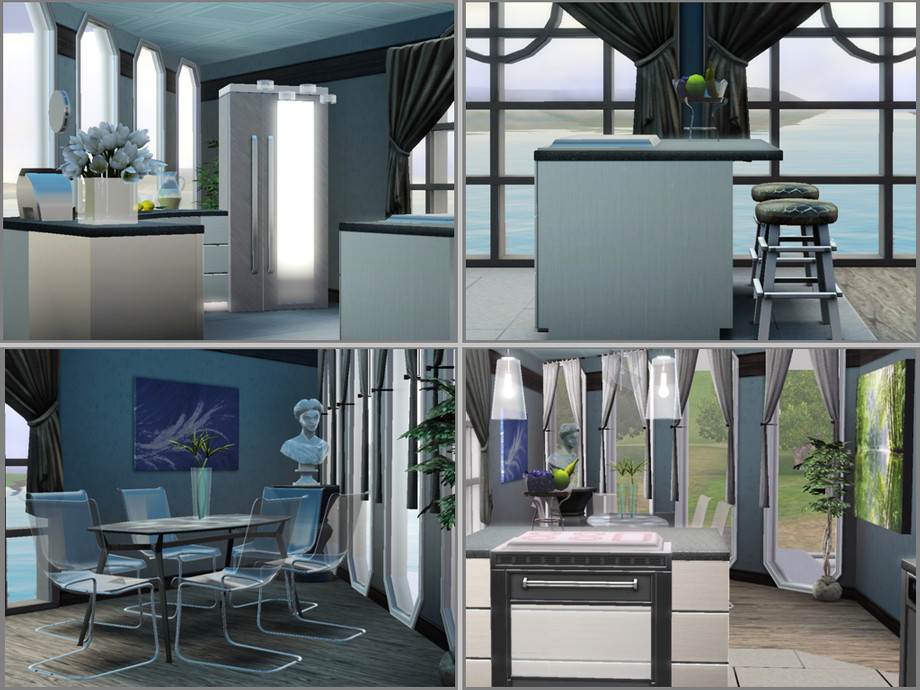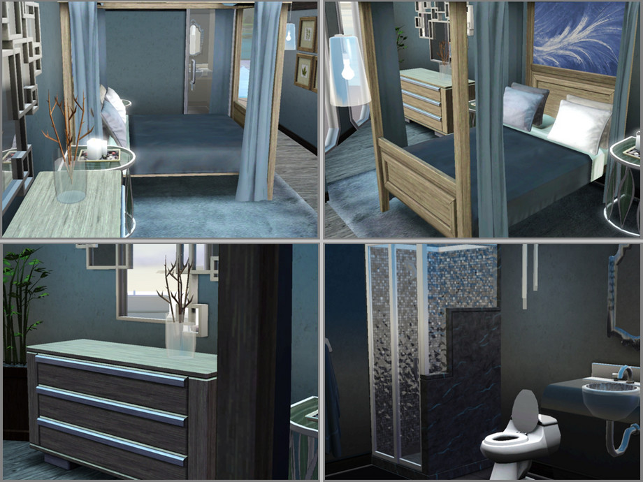 Houseboat created by Atheaflower6. This fully decorated 2 bedroom houseboat will let your sims enjoy a day on the water while staying stylish. There are 2 bathrooms, which are roughly identical, on the second story. On the third story there is the control tower and steering wheel. Outside, there is a hot tub on the main floor, and a balcony on the 2nd story.