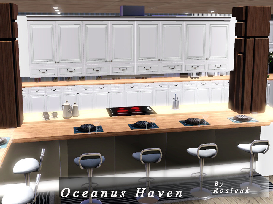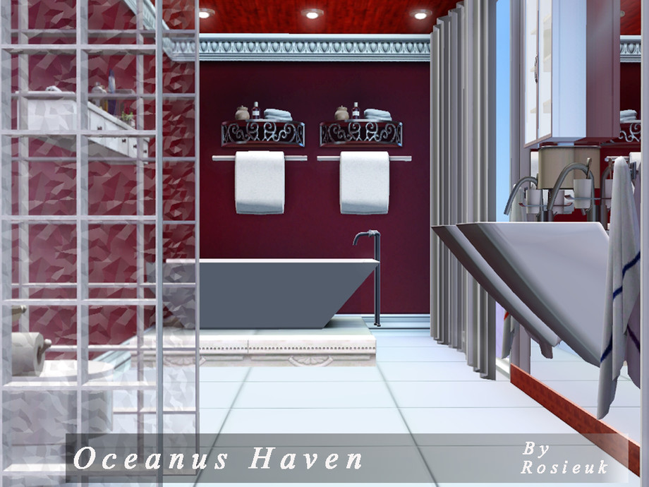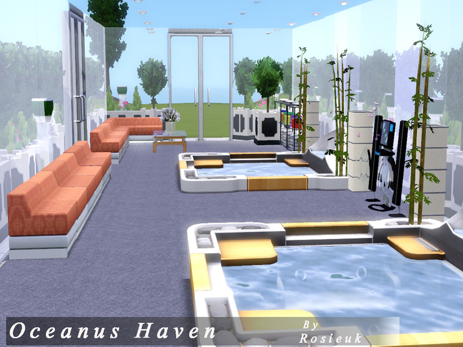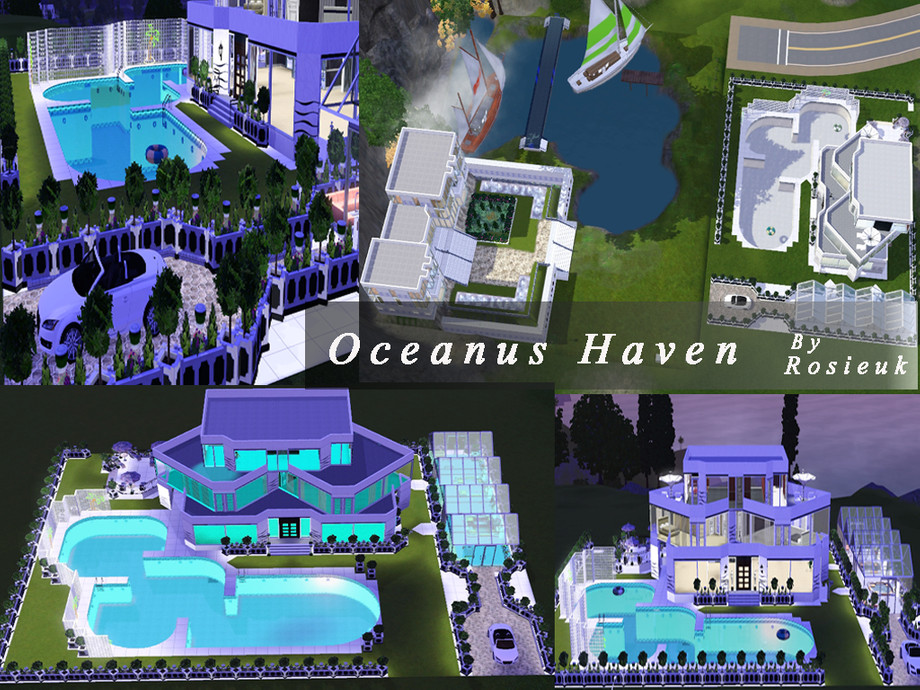 This beautiful home,has everything your sim's would need, there is a lovely Pool at the front of the house which glides around the side of the house, there are hot tub's that are under a wondeful Glass house, This home has three bedrooms,each with there own bathroom, A lovely sitting room, with through dinning room, and a beautiful open kitchen. All the ceilings are wood panelled with spot lighting.