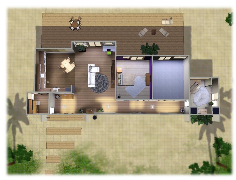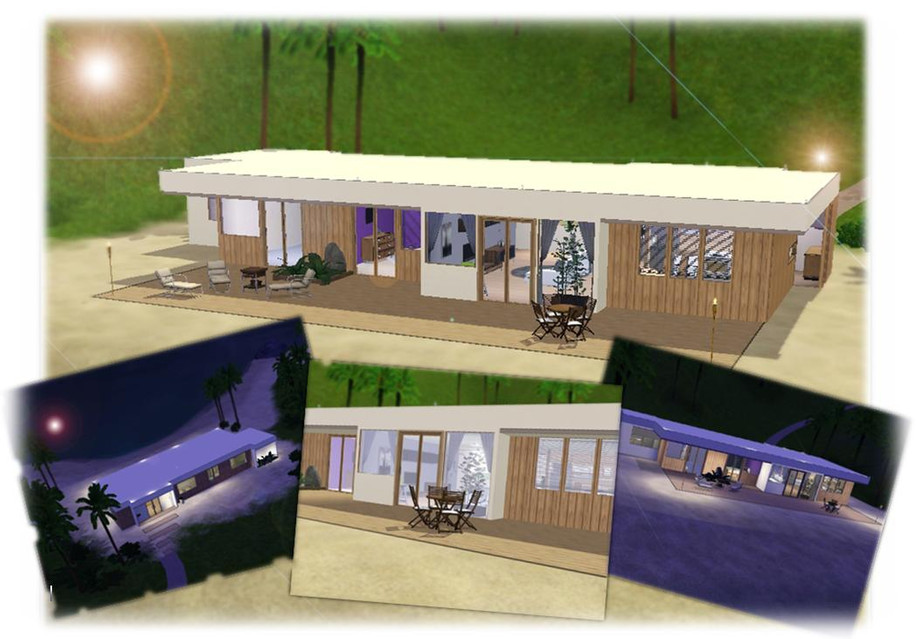 "On The Beach" is a perfect home for a small family. It is situated on the beach and has a modern design. Your sims will enjoy living close to the sea, away from crowded and noisy streets. This beach house includes 1 bathroom, 2 bedrooms (one is not furnished), spacious livingroom, kitchen with dining area, small wardrobe and a deck where your sims can relax or throw a bbq party. It is furnished and decorated. Give your sims an opportunity to watch spectacular views from every room of the house! Enjoy!