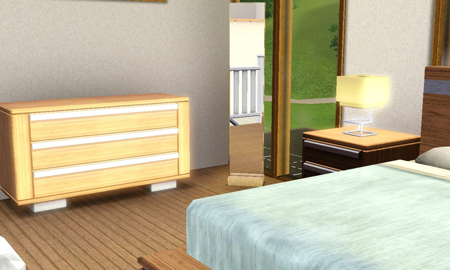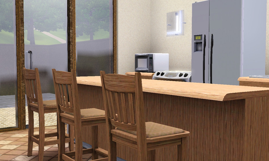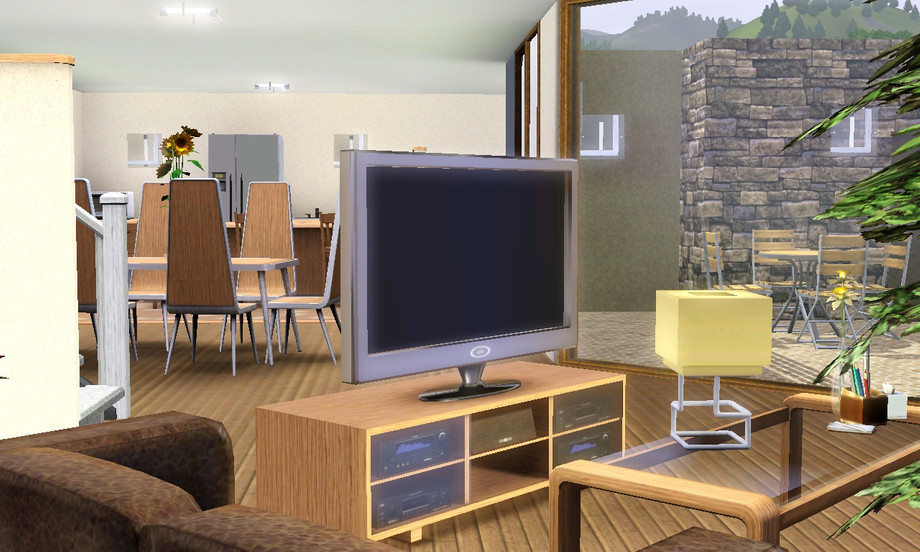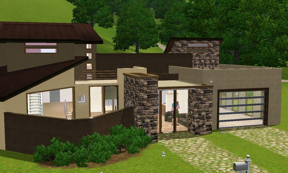 This modern house makes the perfect mountain home for that nature-loving sim! Three bedrooms, three bathrooms, plus attached garage. Fully furnished. Thanks to cyclonesue for her useful walls, and to Mutske for the modern windows! Enjoy!