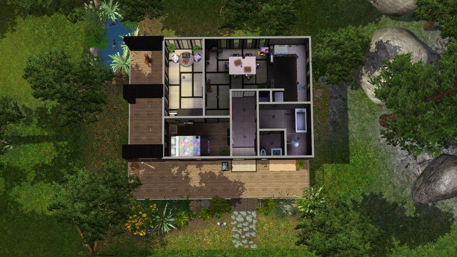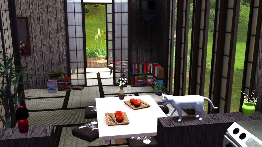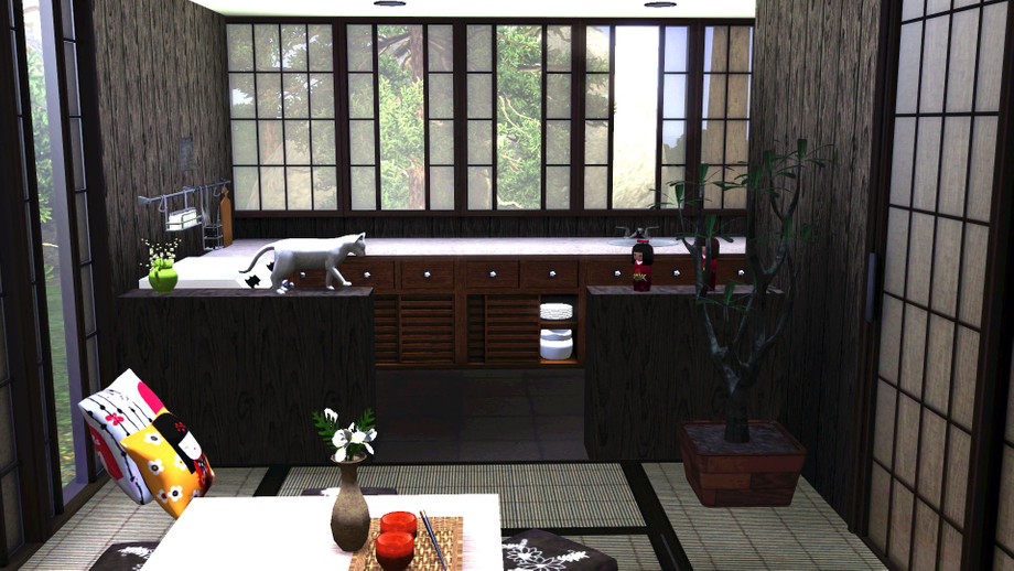 Osaka life.This is another japanese inspired house.I really wanted to capture the feel of the authentic,small and older style of houses in japan.This tiny lot features 1 bedroom and 1 bathroom,tea room and an outdoor dojo area next to a pond.I did my best to make a kotatsu table in the main living room,which is off the open style kitchen.Plenty of windows and wood give this cute little lot a very homey feel.This lot was built on top of the water fall in barnacle bay making it feel even more secluded (was a park i turned into residential,it will still work fine in any other location.)I hope you all enjoy!Happy simming!!