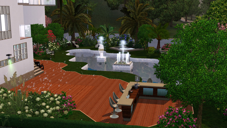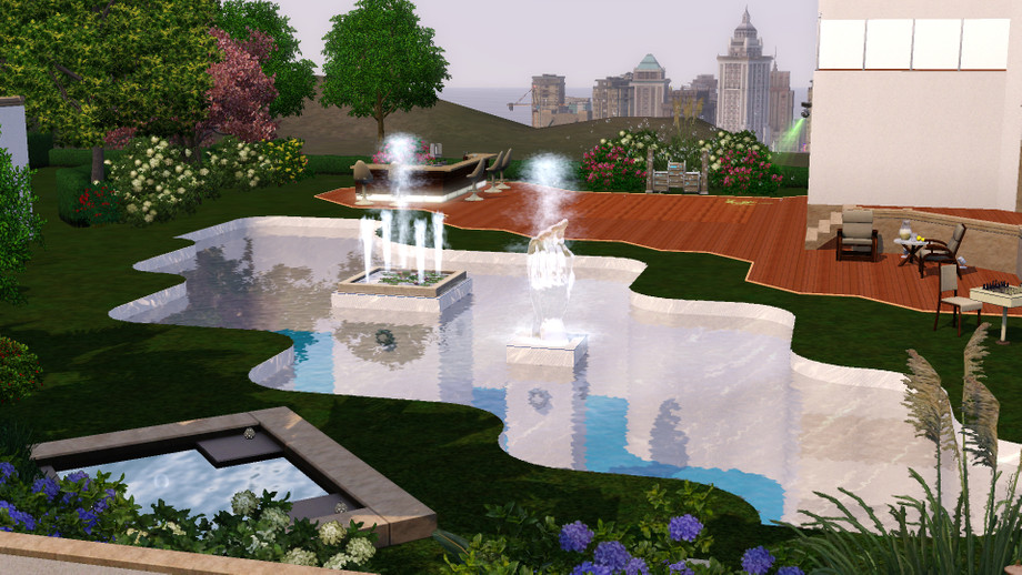 An updated version of my first submission Panorama. A modern property with three/four bedrooms and two and half bathrooms. Open plan living area, with views from the dining area. Large garden with sculpted pool, barbeque area, sun loungers, bar and dance area. Garage with room for two cars and space to practice your drumming out of the way of relaxing sims. Built in Bridgeport at 64 Applewood Lane, if placed there your sims will have stunning views across the city and surrounding area.