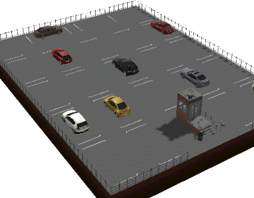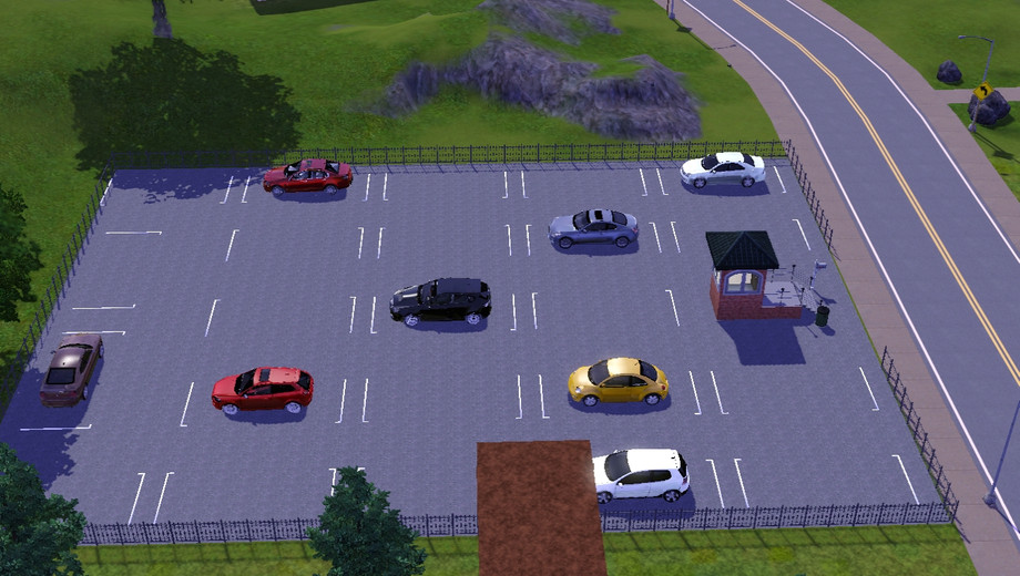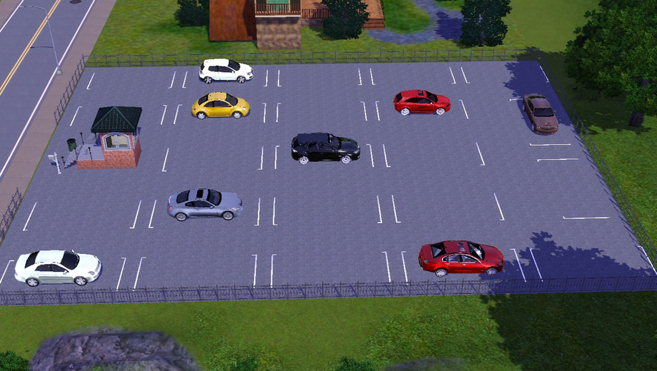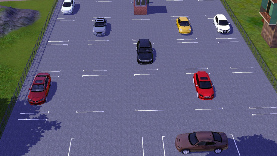 A parking lot for your sims. 30x30 lot size. Contains 23 parking spaces and a small building where the parking lot guy stays. The cars I have put in the lot already were created by Fresh-Prince Creations and the parking spaces were made by carlosflipepedro.