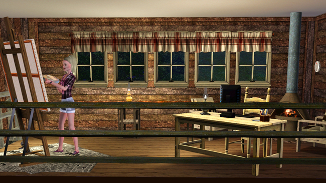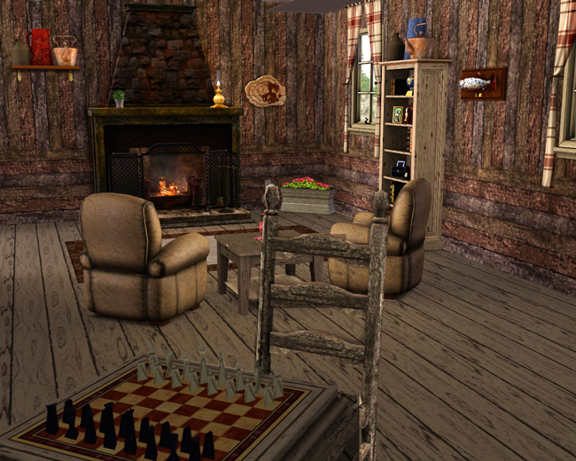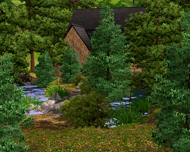 Does you Sim crave seclusion or need a quiet place to paint or write? This little cabin buried deep in the woods is the perfect spot! One bedroom and one bathroom, artist/writer's loft, three fireplaces, all overlooking a beautiful creek with abundant fishing. One story plus loft. What it lacks in modern conveniences it makes up for with rustic charm!