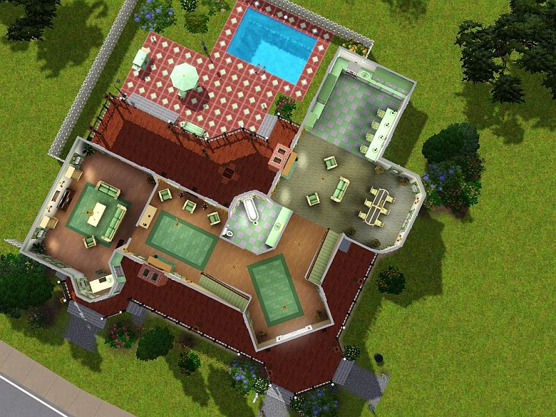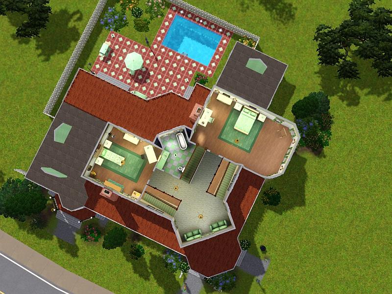 Pretty nice little palace that offers 2 bedrooms, 2 bathrooms, 2 fireplaces for that chilly cold days, kitchen, diningroom, nice livingroom, hobbyroom and outdoor a little swimngpool, a pretty terrace and a nice little porch. I hope your sims will like this cozy place for living.