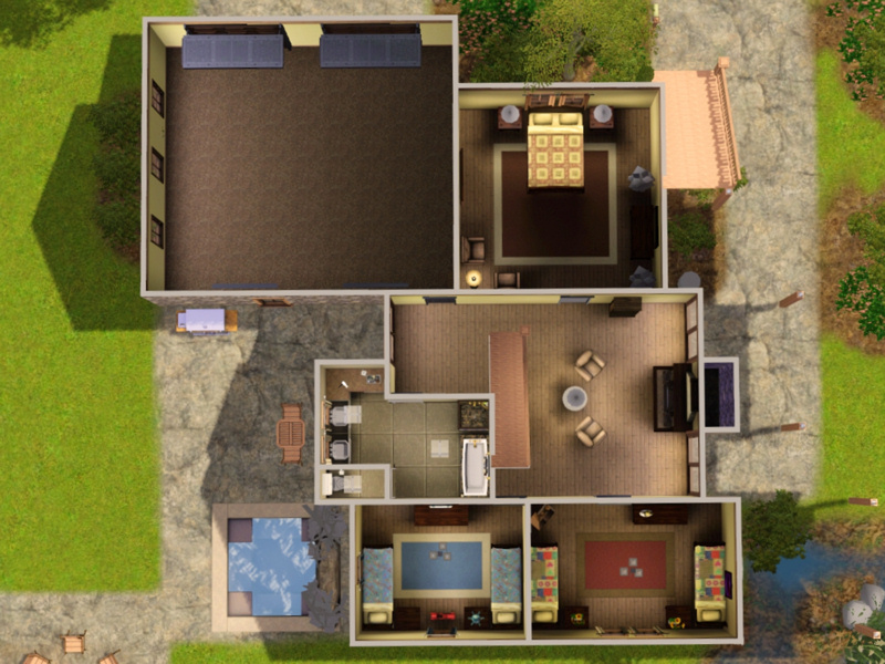 First Floor: Master bedroom, two additional bedrooms, full bathroom, reading area, 2 car garage