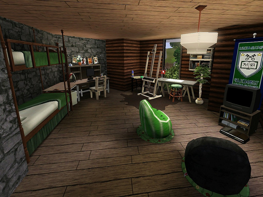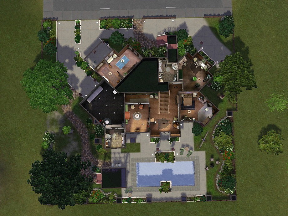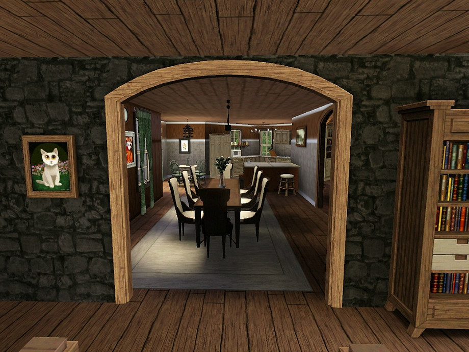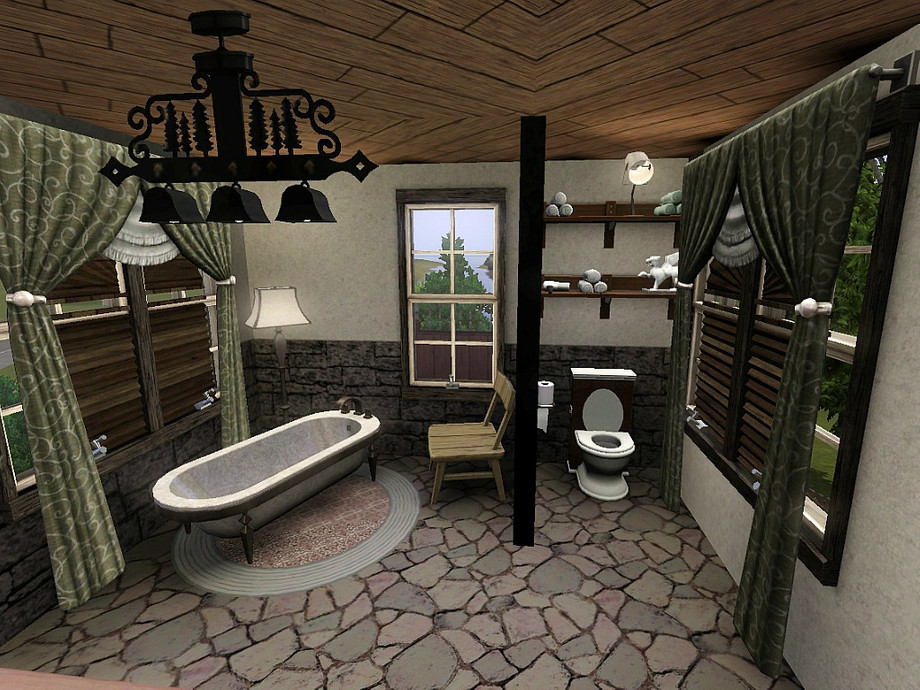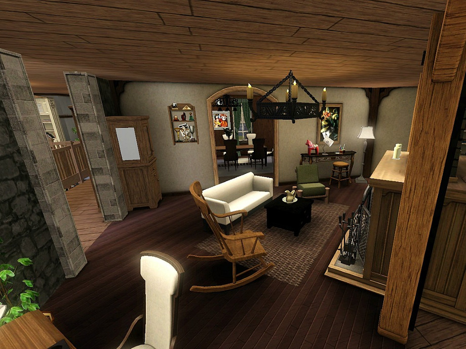 Pineview Lakeside is my latest house with a rustic interior (No CC). It has 4 bedrooms and 3 bathrooms. You can always build more rooms as there's lots of space beside the garage.. if you have a large family. Hope you like it!
