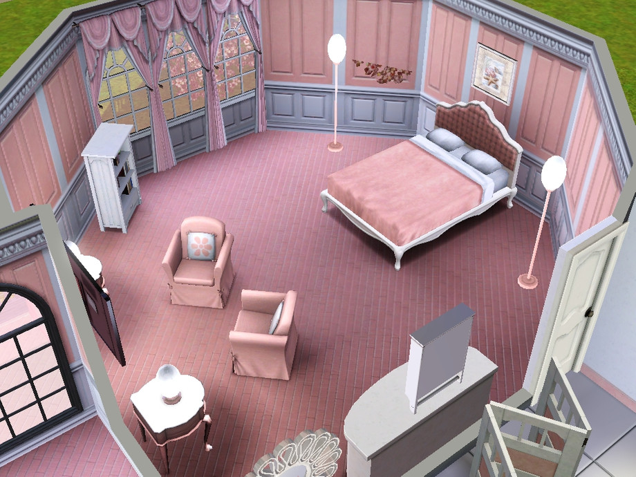 Missy Pinkle's home! ^^ Part of my colorful project! It's fully furnished. Has living, dining, kitchen, study, 2 rooms, and 1 bath.