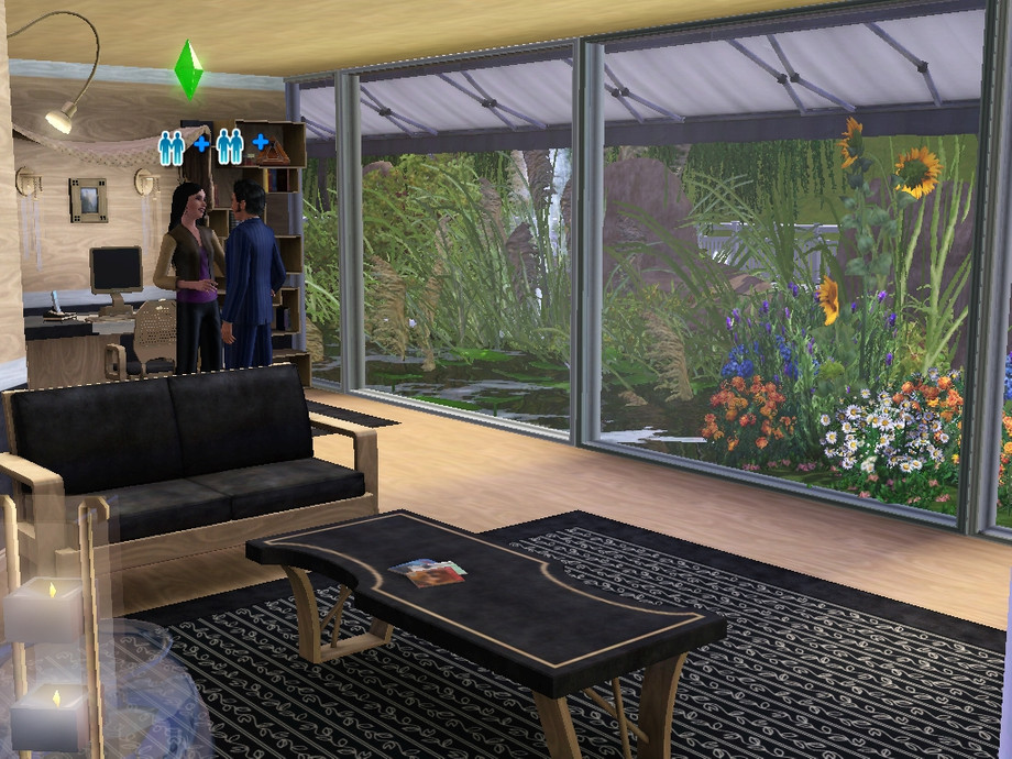 Modern house. Perfect for all natural + dance + music lovers. In the party cellar: Bar, dancefloor, pool. 1. Floor: Kitchen, livingroom, 3 bathrooms. 2. Floor: bedroom, musicroom, bathroom. With a fascinating landscape. Pond viewable of almost each room. Hope you like it! TESTED in game -as always- Enjoy it! If you like my house/s, you may click on the Thank The Artist-Button (heart) THANKS :)