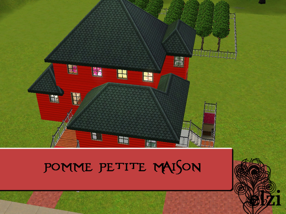 A quaint home for thosesims who like outdoorsy life, and apples! The name means Apple Cottage in French. World Adventures required for some items, such as basement. Stocked with apple orchard in back yard.