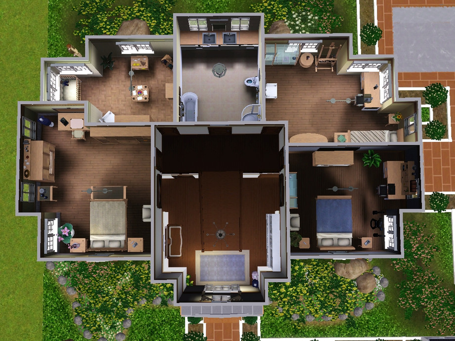 Hi ! This house is perfect for a family of 5 sims. Object Enable Hiding must not be checked for the shutters to appear.