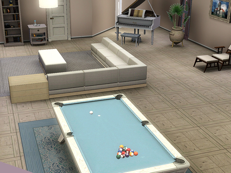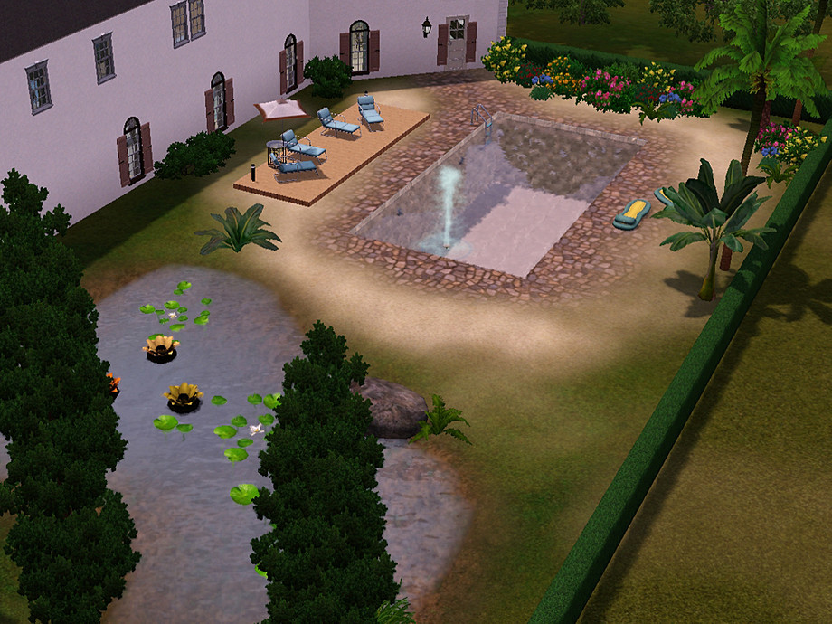 This is a perfect house for a star who is retired. This is not really a home for a family. This is more a house for a rich sim who wants to live alone. There is room enough for guests (there is a guest bedroom) and there is a bedroom for a domestic. The garden is big and well maintained and there is also a beautiful library.