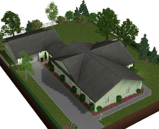 This lovely ranch styled home was built especially for my good friend, Lisa 9999. This is a rendition of her real life home and was built as a gift of our friendship. Although not an exact copy of her real life home due to game limitations, the exterior, floor plan, interior colors, and furniture placement are according to her descriptions. Hope you enjoy your new Sims home, Lisa.