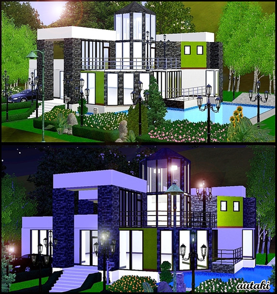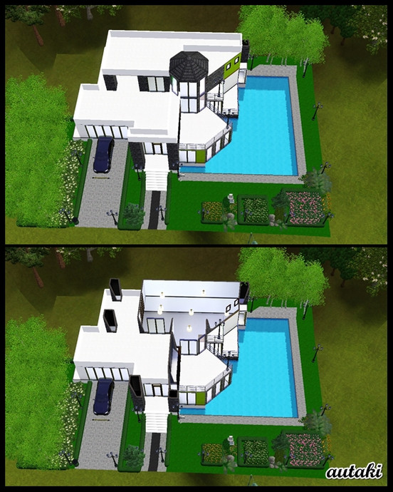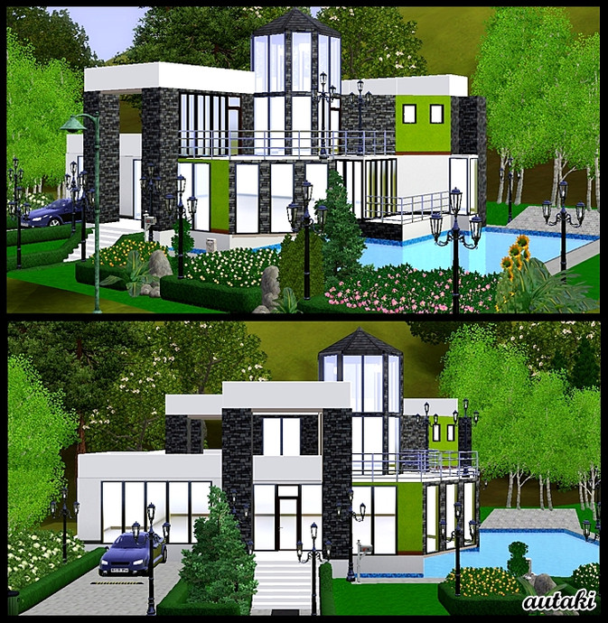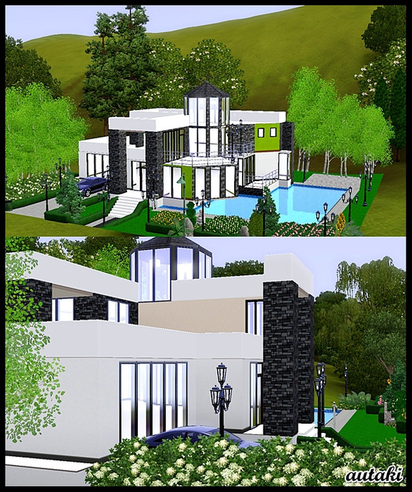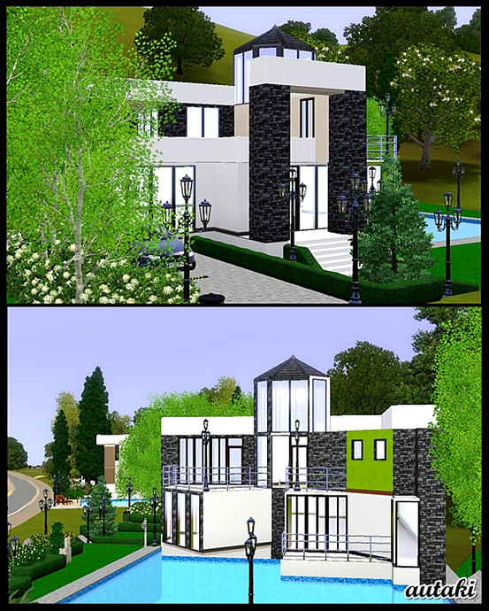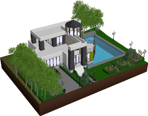 For medium-sized family home. A large swimming pool. The house some outreach to the pool. To get fresh water with ice in the morning. House designed with a sleek, modern livable