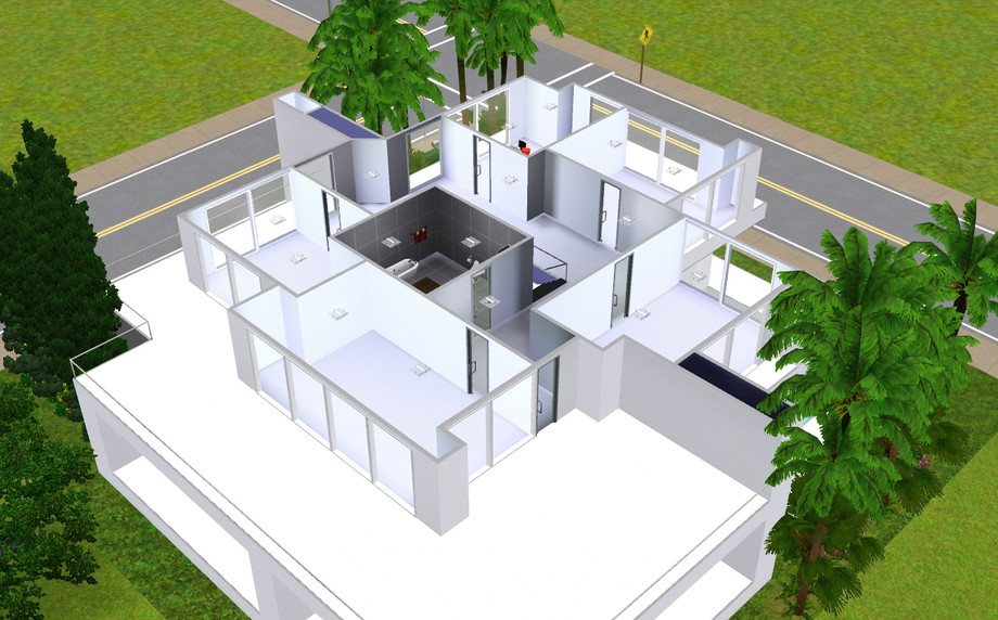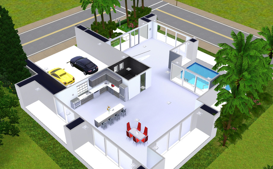 Modern house with loads of rectangulars and cubes consisting it, and a lovely pool area.! Only bathrooms, kitchen, office and the dining place are fully decorated and furnished, where lights are all included both internally and externally. (note: the cars in the pictures are not included in the file, but available to download here @ TSR). Enjoy playing :)