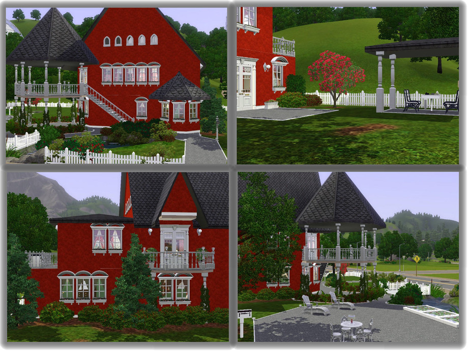 This little home will thrill your Sims with its uniqueness and cottage style. Although small, it offers much charm and many amenities. The grounds have a large patio for dining or games. There is a small observation deck for gazing at the stars or fishing out of the little stream that runs by the home. The ground floor is upstairs and opens into a large living/media room. There is a small office, a full bath and an eat-in kitchen off the living room. Downstairs is the master suite with a full bath and a foyer/art area going out to the backyard. There your Sims can play chess under the covered game area. Enjoy!