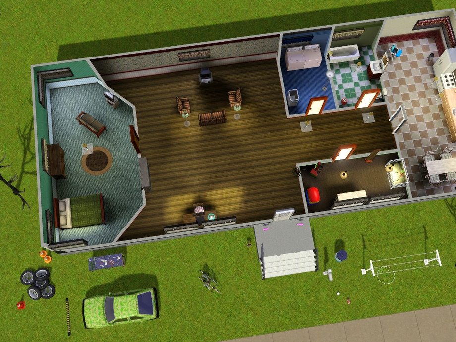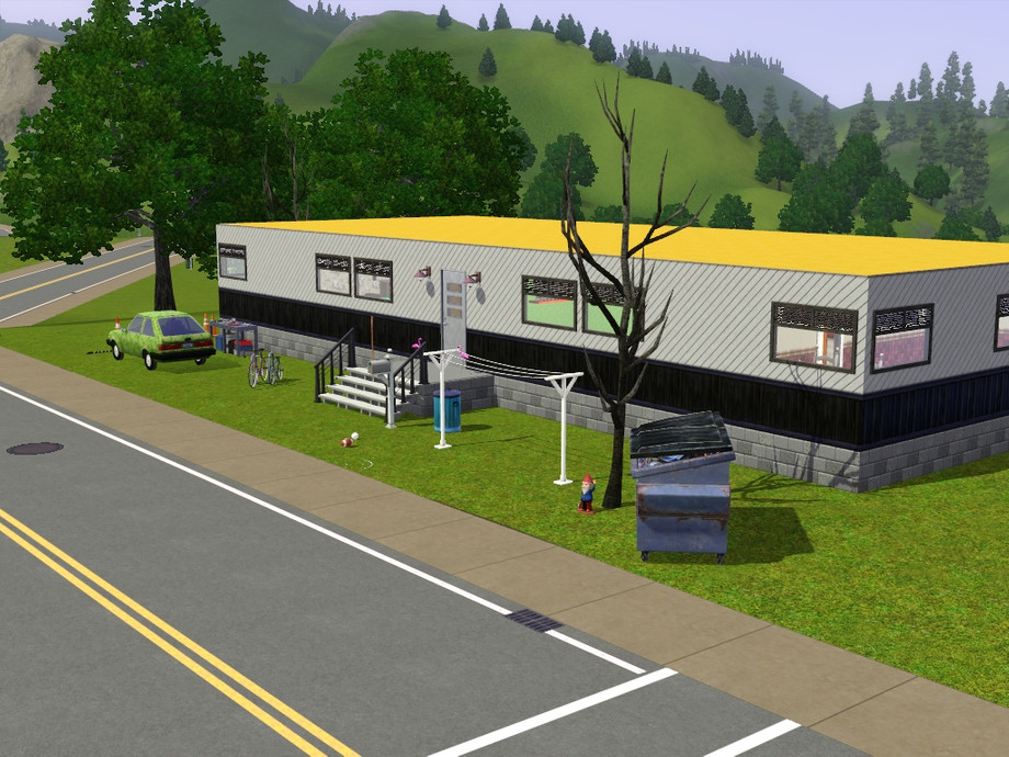 No CC, FF. For your hillbilly sims. 2 bedroom, 1 bathroom. Comes with a beautiful camo car, one story.