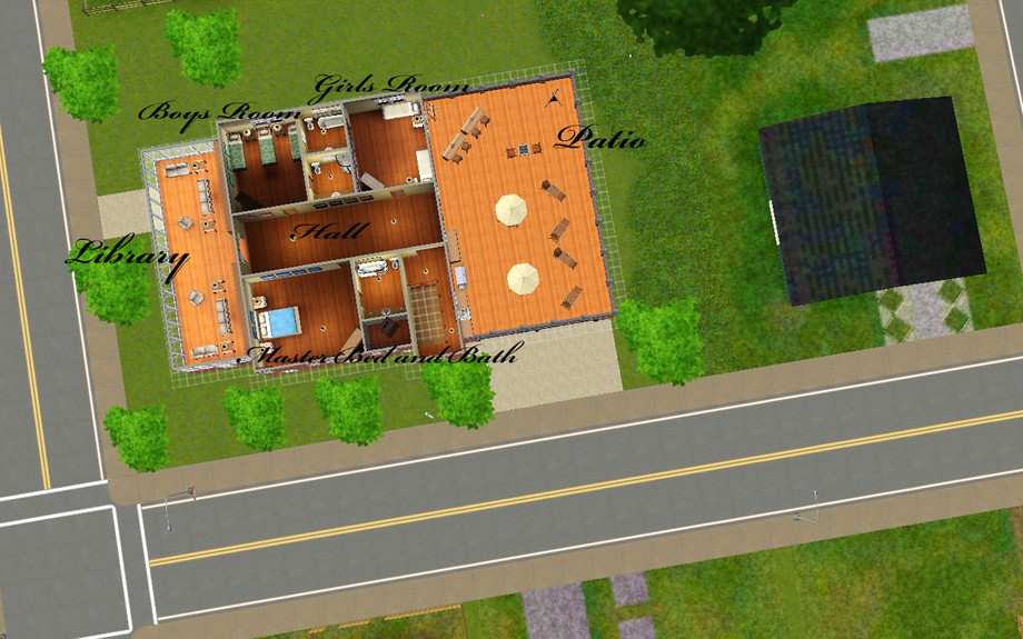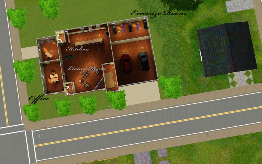 This was once a fire station and now is a home. With 3 bedrooms, 3 full and 2 1/2 bathrooms and an open concept living room/kitchen this refurbished fire station makes an interesting home. It also has a large balcony over the garage, an exercise room, an office and a library. Everything your sims could want with room to add more!