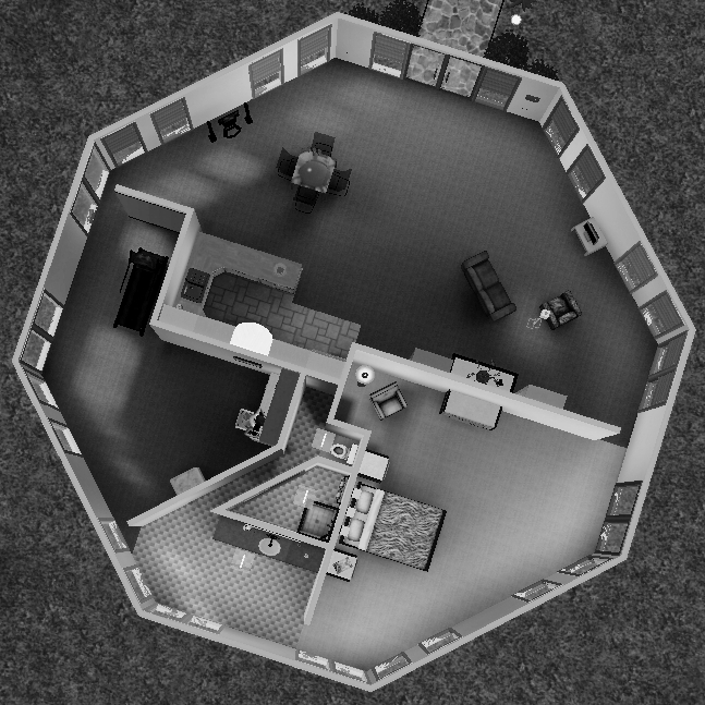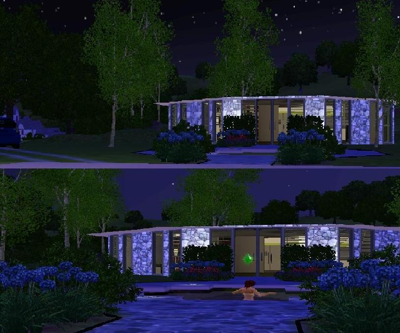 This unique house is just that,the name speaks for it's self.This house has a very open floor plan,no doors needed except for the entrance.Privacy is no problem here,the walls do that for you.The house is a 1 bedroom,1 bath,office/exercise room which can be turned into an extra bedroom,large living room with dining room attached.The decor is very modern and up to date.The pool in the front yard is also part of the beautiful landscaping and the land has plenty of space for a basement if wanted.As all my houses this house is Sim tested.If you like this house please hit the heart and comments are always appreciated.
