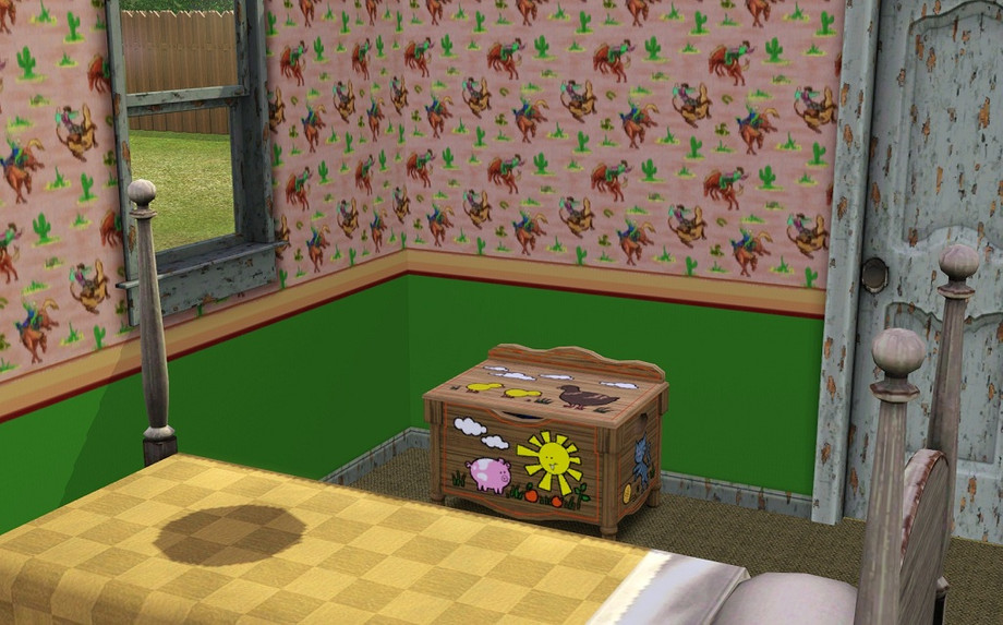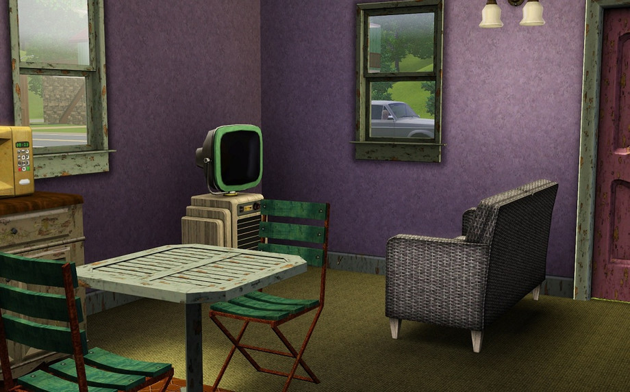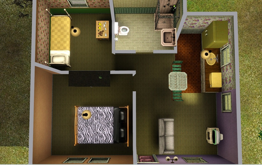Iin true "starter home" style, I decided to make it a fixer-upper. I thought it would be fun to make a starter home the way they come in real life, with worn paint, horrible carpet, clashing colors and hideous wallpaper. As such, I've made a 2 bedroom, 1 bathroom home which is cozy, run-down and a bit unkempt.