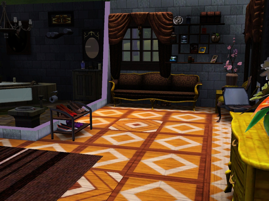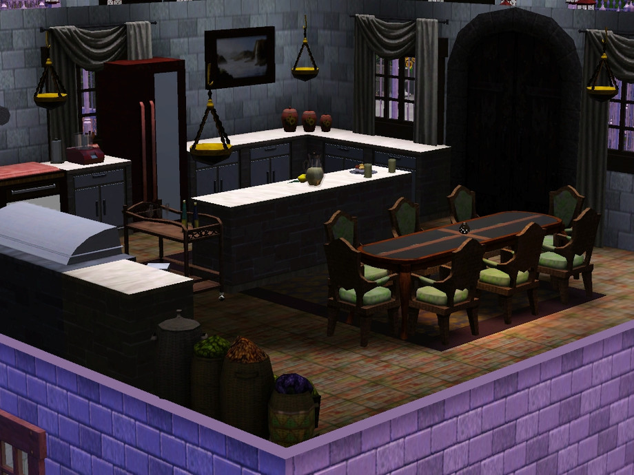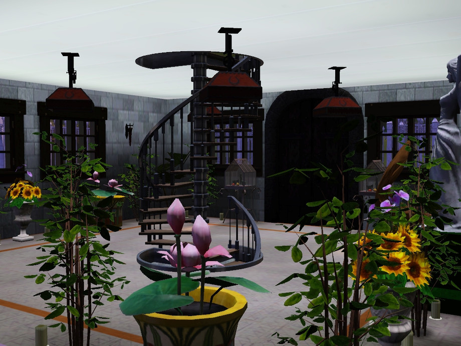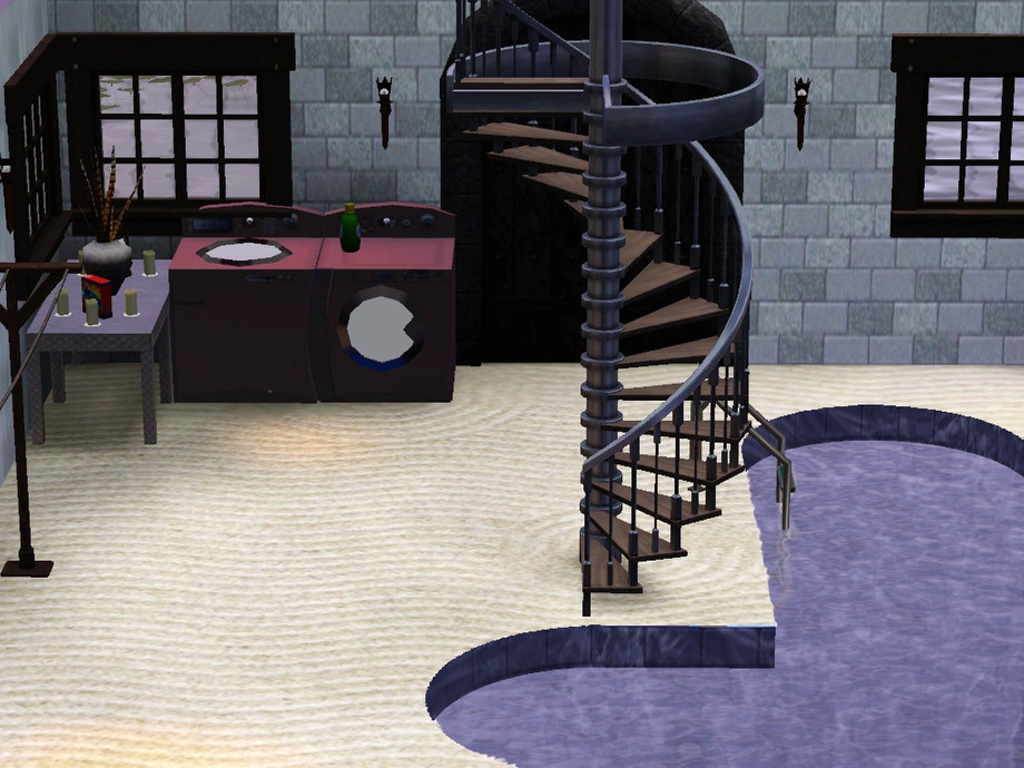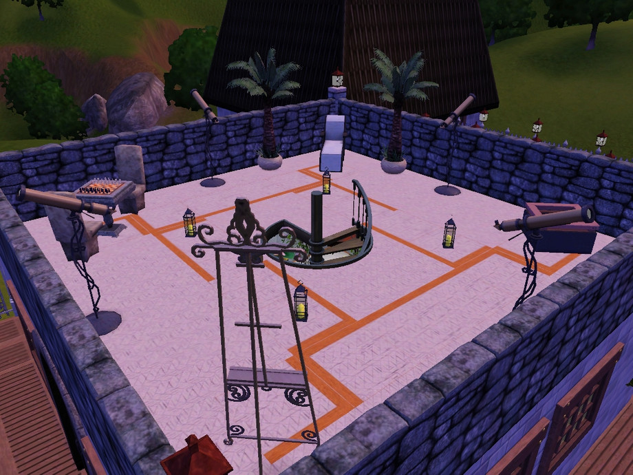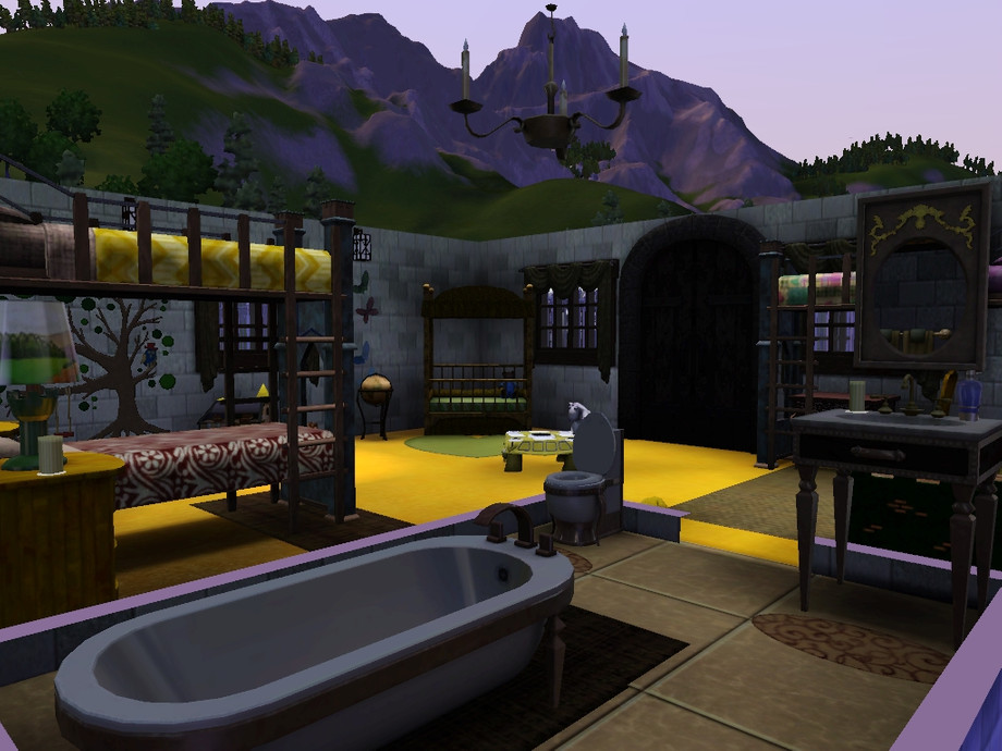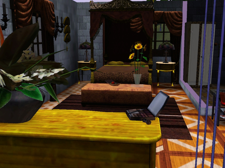 Fortress-like Castle for your Mordern *Knight-in-Shining-Armour* and his Queen. Bottom floor and top 2 floors are *fit to live like a king*. There's 3 open rooms to change to your personal liking. 2 Bedrooms (main with double bed, and child, including single bed, bunk bed and crib). 2 Bathrooms. Kitchen with dining area. Gym. Small study with sitting area next 2 the fireplace. Stydy includes pc and bookcase. *Look-out area* on top floor with telescopes, easel, chessboard, firepit and *tan-chair*. Includes *GreenRoom*. Very spacious. Full of potential. Surrounded by water, so there's enough spots to catch some fresh fish. CC I used are, Suza Simply Styling Landscape plant 17; Sims3d-delfina-pedras-e-tronco; Sims3d-delfina-pequena-palmeira; Sims3d-delfina-lirio, Living Leon Muffins, Stylist Sims Bedroom 02 Painting; Skalkovski Converter Set5 Young Rug.