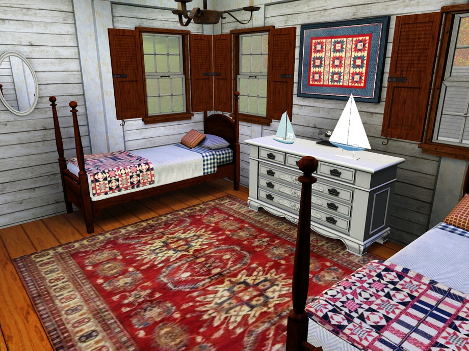 A Charming little New England Weekender thats so cosy your simmies will stay all week! Includes a detached garage and workshop or hobby room. 2 beds, 2 baths, laundry room and four fireplaces for those chilly New England winters! Created by Samusa06.