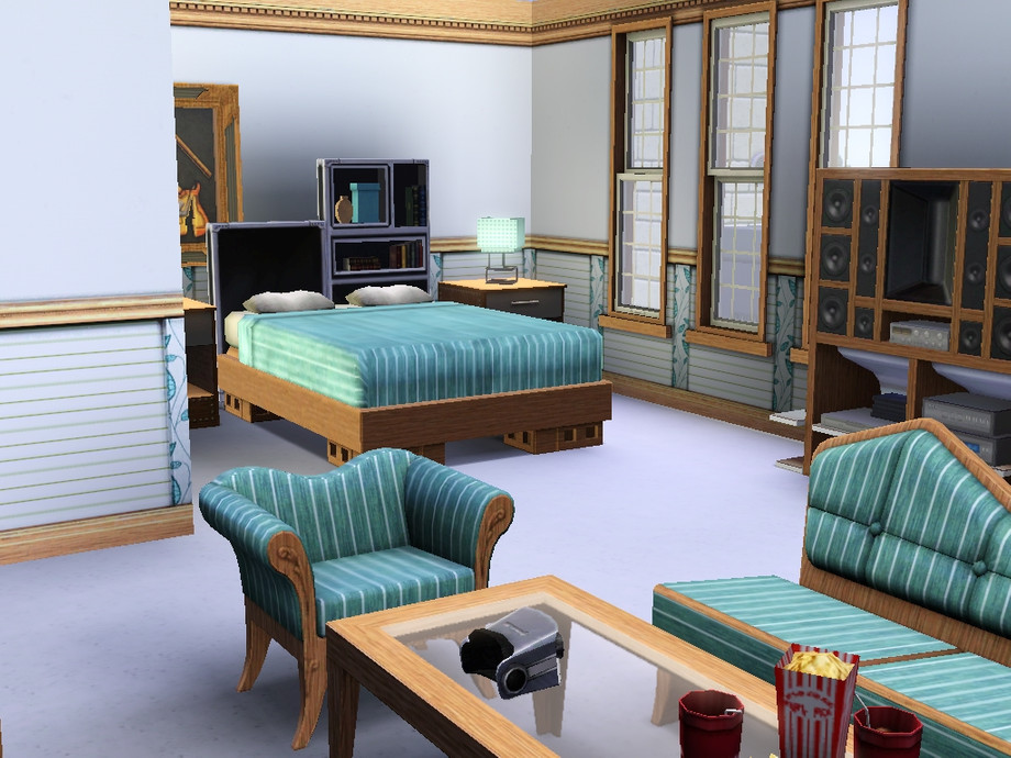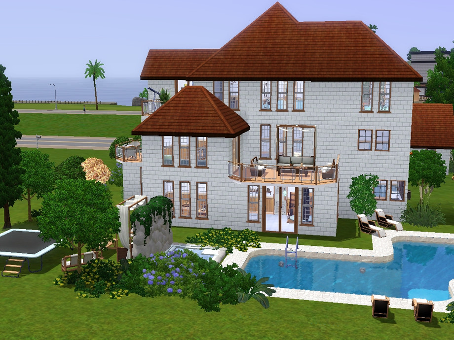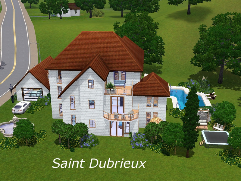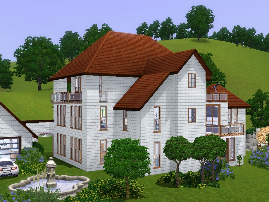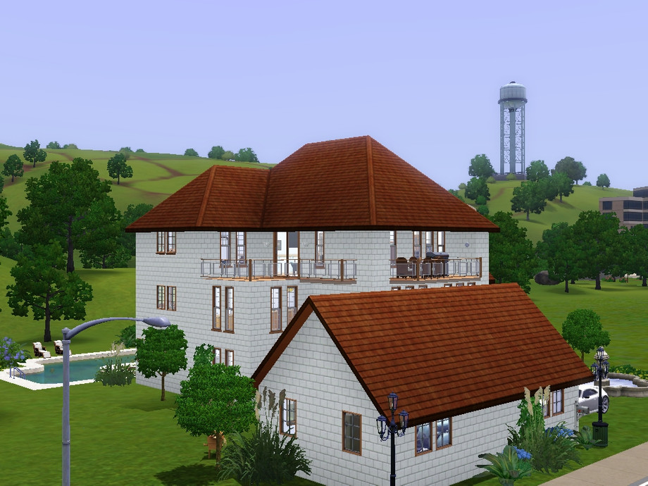 This house has 7 bedrooms, 4 bathrooms, a large living room, a kitchen, a sculptor's atelier, a swimming pool, a jacuzzi, 5 terraces and a laundry for those who enjoye having to clean the dirty clothes the sims leave on the floor all the time. It also comes with a garage, fruit trees and a collection of egyptian antics.