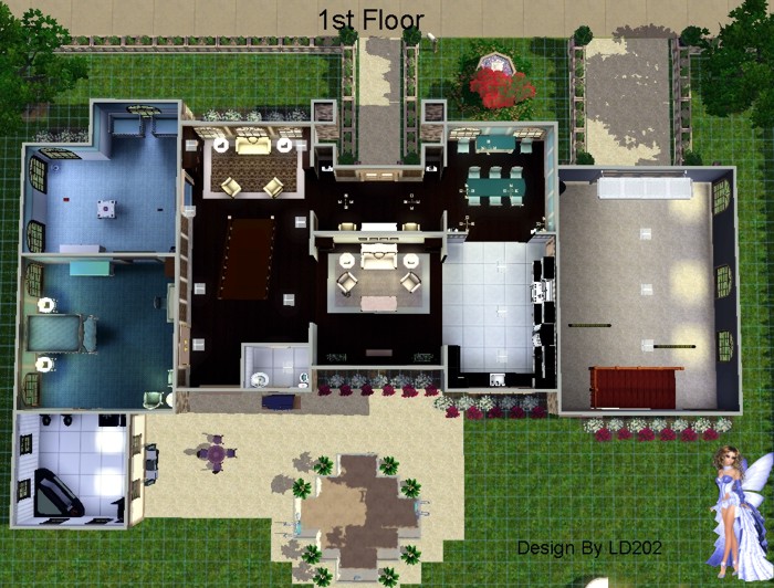 This House has 2 floors with a basement. In the basement there is wine room, Eygptian Room, and a Paris room, also a China room for the treasures you bring back from you trips. On the 1st floor has kitchen and dining room livingroom Master Suit, also nursery, 1/2 bath and entryway. On the 2nd floor is two bedrooms, family room and workout room, 1/2 bath. and deck. Outside there zen garden and pool, play area. Design by LD202