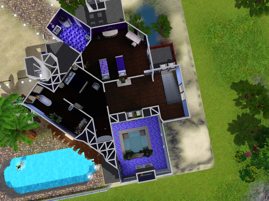 Sea dreams is a lovley vacation property for your Sims to enjoy some fun in the sun. Sea Dreams includes 2 large beds, kitchen, dinning area with perfect view of the out door pond and jacuzzi, 3 baths, bar and lounge with dance floor and aquarium that has a clear view of the large pool, large deck for BBQ and fishing, large fountain next to relaxation hut. Enjoy.