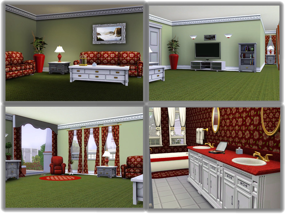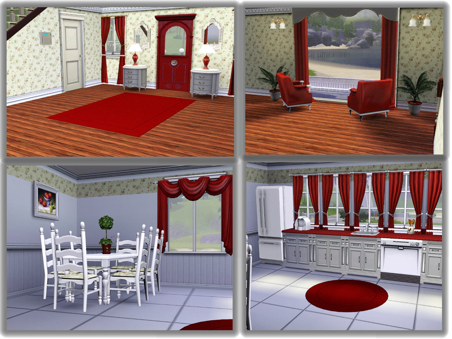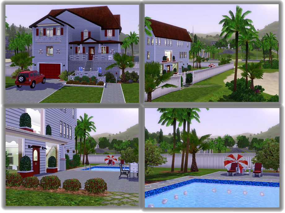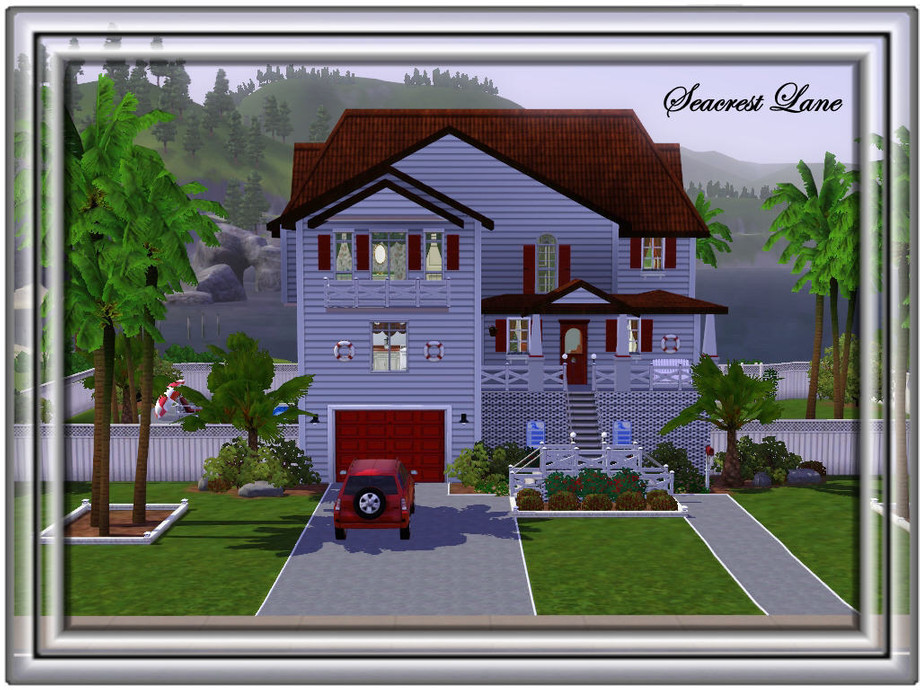 This quaint little beach house will be perfect for that summer vacation or as a retirement home for your elderly Sims. All they need to bring is a fishing pole or a favorite book to relax in this sea air atmosphere. Decorated in traditional colors of red, white and blue, this home offers all the amenities needed for skill learning and has plenty of recreational features. The main floor has a large foyer entrance, a kitchen with casual dining, a sitting area to take in the ocean view and a half bath. Bottom level has a living/media room and a full bath. The top floor has a master bedroom with adjoining bath and a guest bedroom for those weekend visitors. One car attached garage (car not included), pool, deck and dining areas are available.