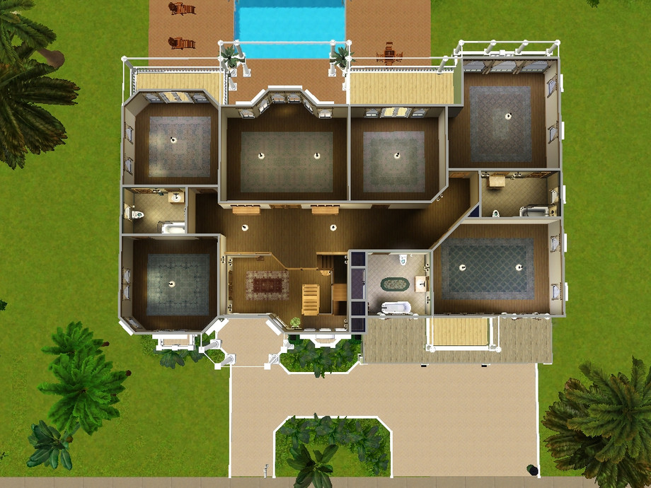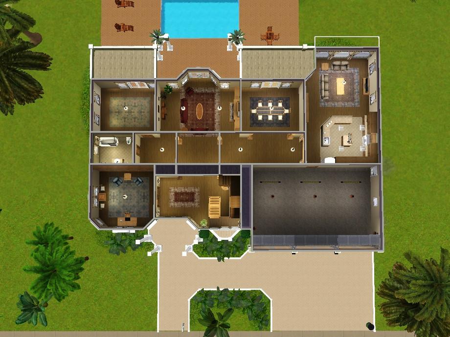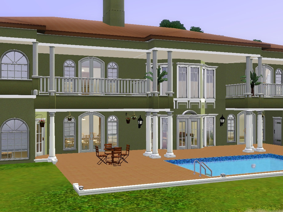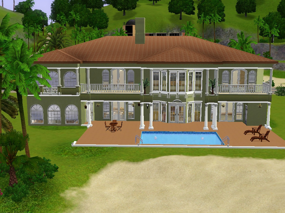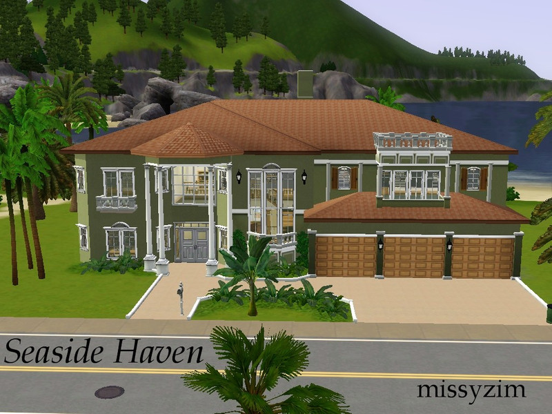 This is a beautiful Mediterranean style home which sits nicely along the shore. Perfect for Sims who live in warmer climates. Inside is a valted entryway with staircase, great room, study, dining room, kitchen with attached family room, guest bath and guest bedroom/office. Upstairs is the master suite, a large leisure room, 4 additional bedrooms and 2 bathrooms. I left the bedrooms unfurnished so you can decorate them as you like. I tried to keep everything in neutral colors. 3 car attached garage.