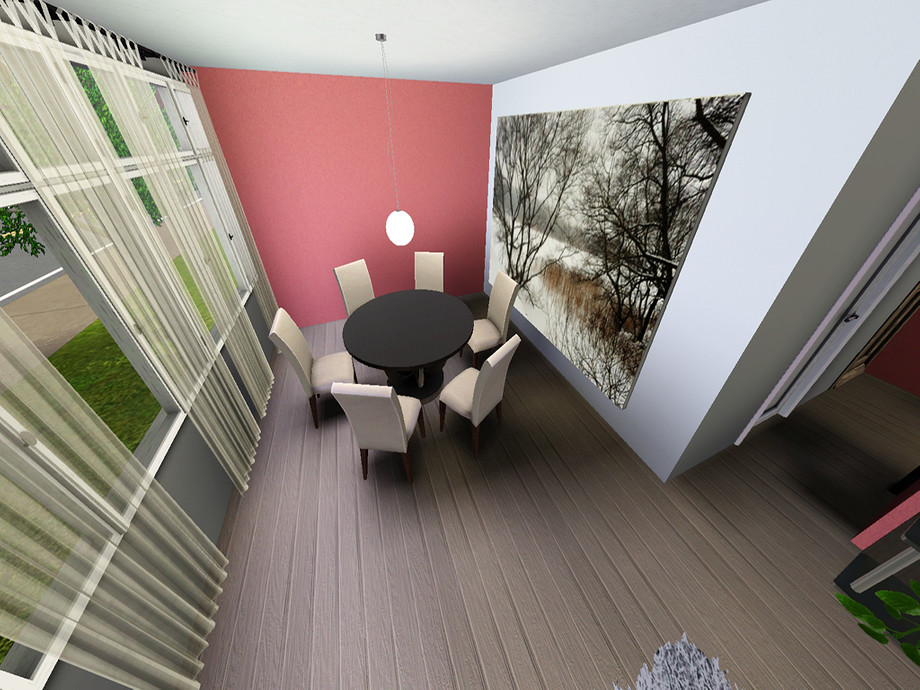 The open-living space is a replica of mentioned house, while other rooms differ a little bit from reality. Everything is furnished as closely to the original as I could do.