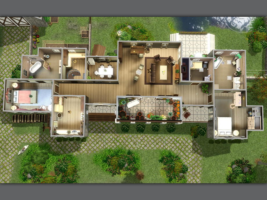 The second Fable is a rural, one-storey, basement home. You can find it on the wine cellar, conservatory, stables for horse tiny, hidden room and all the basic facilities such as kitchen, living room, dining room. In the fairy tale are two bedrooms with two bathrooms and the whole lot is located at Corner 40x40 89 Horseshoe Falls in a mysterious Moonlight. Furnished costs $ 174,349 and the $ 81,484 base version