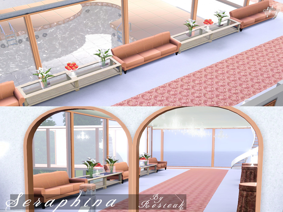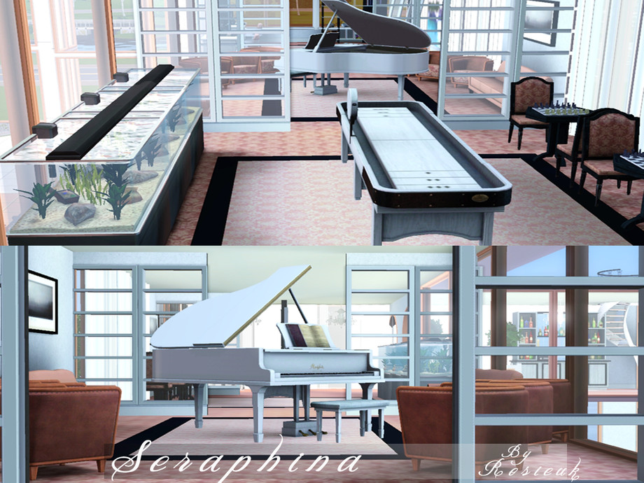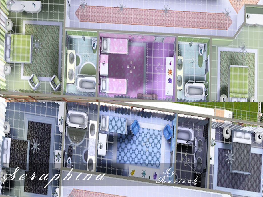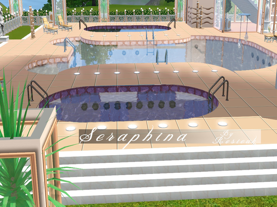 Built in Sunset Vally, Beautiful family home, it has 6 bedroom's four bathroom's and two small closets in the swimming area,it has three pools,a beautiful enterance,inti the house, as you walk around the house you can see the pools from above, there is a music room, quite sitting area, and a computer room, there is a large TV in the sitting room so all the family can enjoy,there is a large kitchen, a large dinning room, and many other thing to keep your sim's happy.
