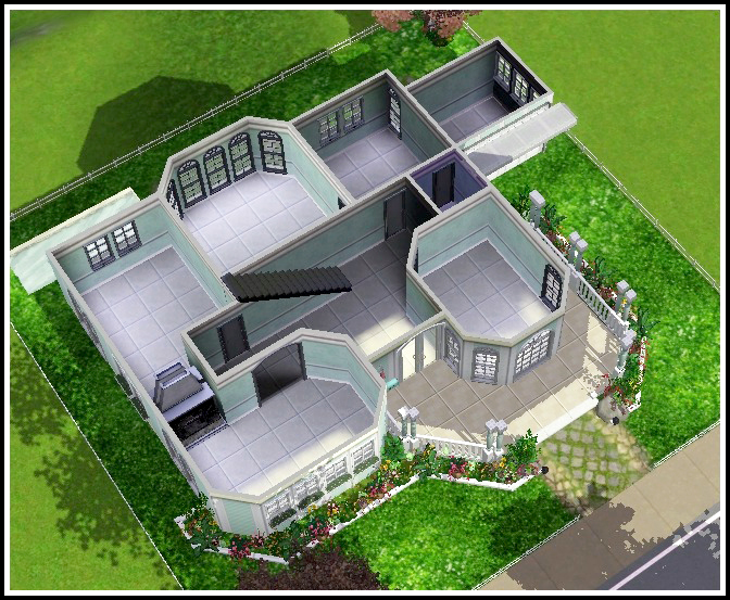 When I look at this house that I've built, I generally see a small lot, but in actual truth this house is fairly big. I really wanted to experiment something different with the roof and so a two-floored-like roof was what I came up with. Another feature of this home that I liked was the double-sided fireplace which is a simple but elegant touch to the home. It separates the rooms from each other and to make things extra smooth I already added a fire-alarm just in case you forget! Please enjoy this home!