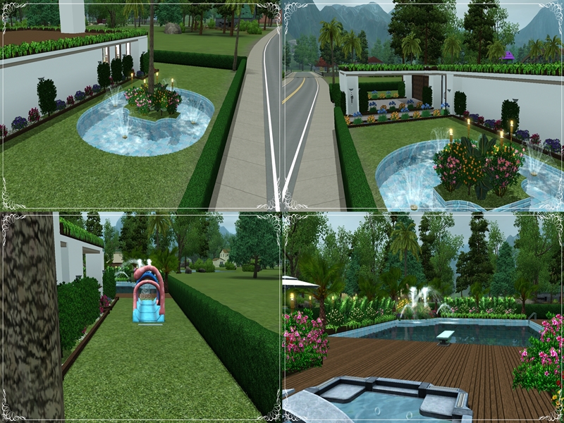Nice modern home. perfect for a couple wanting to start out their married life and have a family. this lovely modern home has 3 bedrooms and 2 bathrooms. and a laundry room. the rest of this house is all open plan. it has a garage that will house 2 cars or motorbikes if you like. plenty of room to expand upwards if you wanted to do that the best place to put sitars would be at the end near the garage in front of the 2 windows, spirals would be better. this lot has a gorgeous pool area with a lovely rockery garden and fountains coming out of it, also has a nice play area for the kids and a hot tub for adults to go and relax.