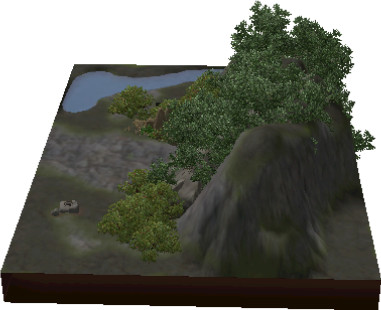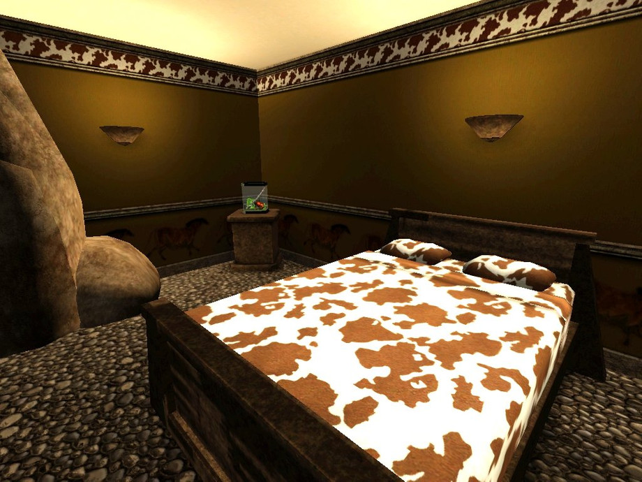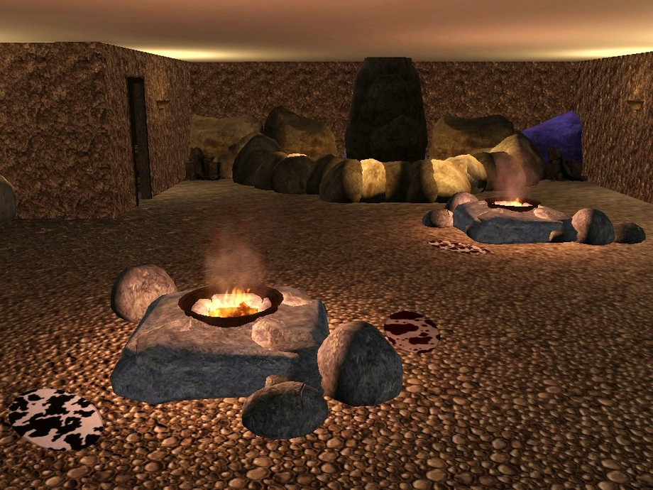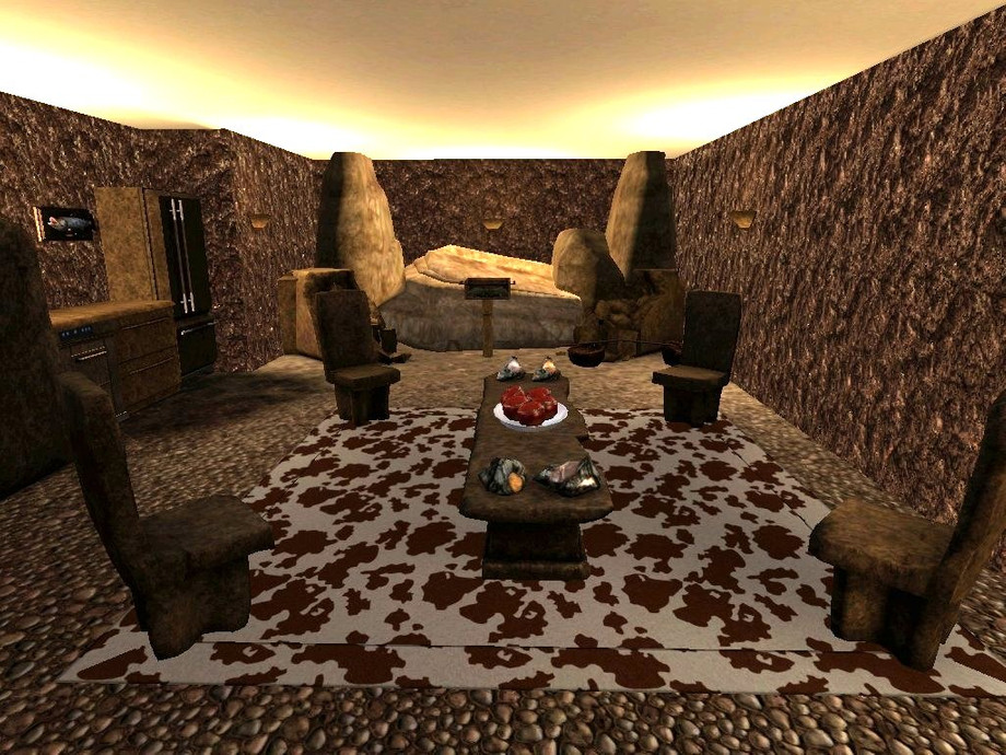 Yabba dabba doo! Forget the Flinstones, here is a lot, fit for any self respecting Neanderthal. A sunken cave like lot, built into the base of a mountain. Rocks, fires, dim lit rooms and a pond for fishing. The lot comprises of a large open plan living room/kitchen area with an open fire. The second level has 2 double bedrooms, and a single baby's bedroom. Large rock pool, 2 fires and 1 half bathrooms. Outside is an open fire and a large pond for fishing.