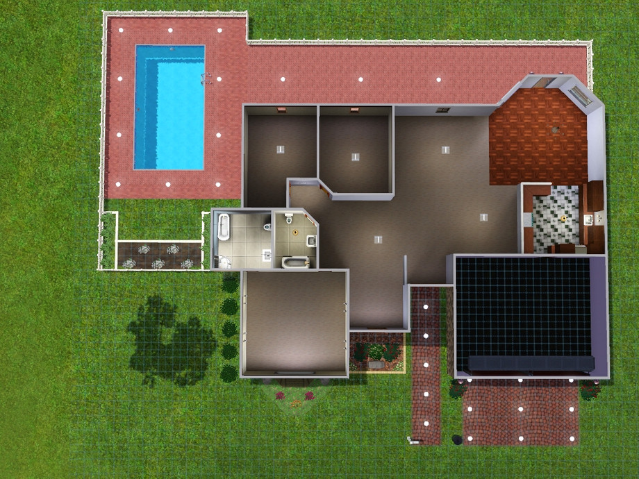 This is a 3 Bedroom 2 bathroom ranch that's easy to play. It comes with plubming, kitchen stuff, and lights. The only custom content item is the fake half wall by Gosik.