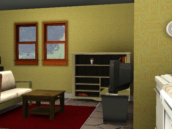 Tiny starter for a single person. As a matter of fact, this house was made little by little by Chester Hemmingway after Cynthia had emptied his bank account. He slept there on a bench and working hard, he could construct this humble house in Riverview. He left it because he accepted a job at Hospital in Sunset Valley. It's really only for one person but there's lot of space to make it bigger once your sim wins the lottery.