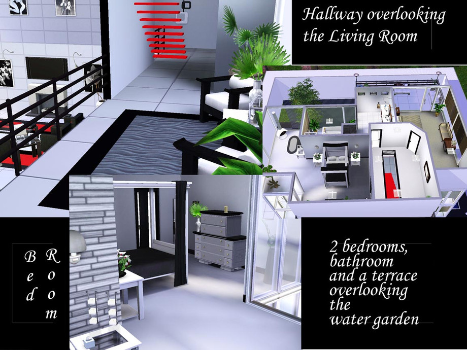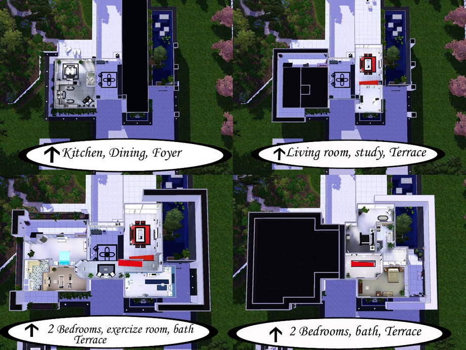 Simply modern consists of 4 bedrooms, 2 1/2 baths, kitchen with nook, dining room, large open foyer, 2 story living room, study, exercize room, 2 balconies, terrace off living room, patio off didng room, pool, smi enclosed formal water garden area all in a fully landscaped yard. Hope you enjoy!